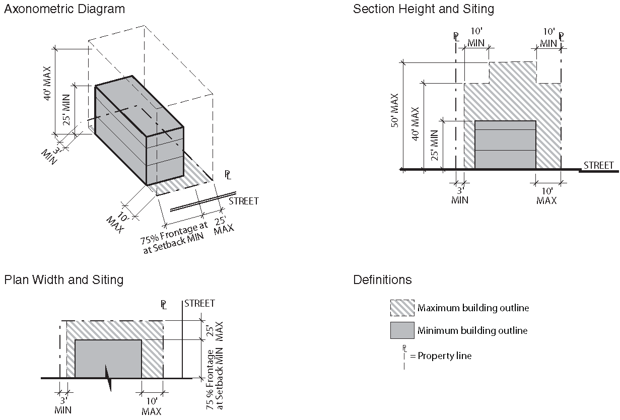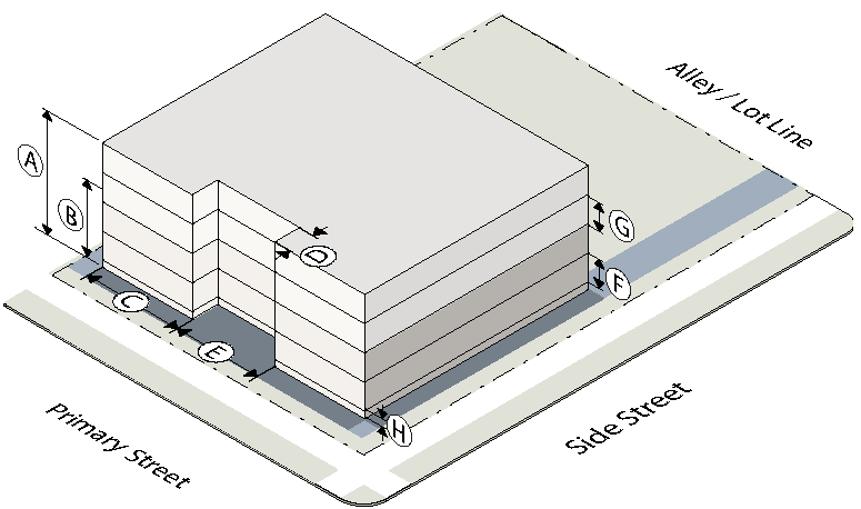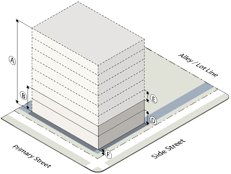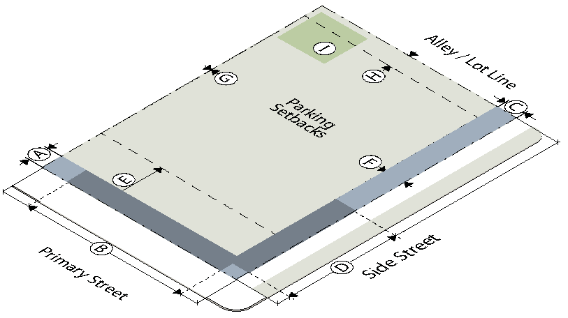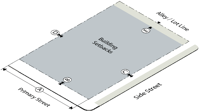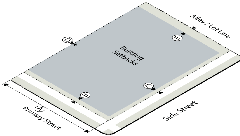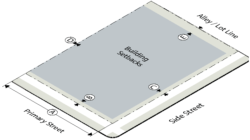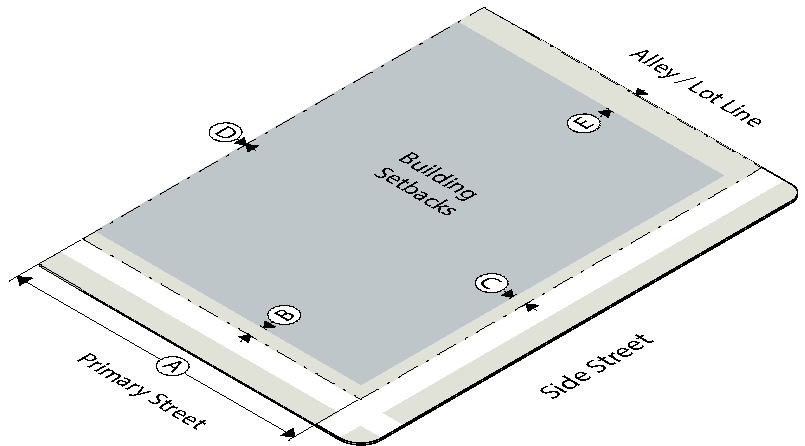 To establish the lot and building standards for your building or site go to the district pages for the subdistrict your property is located in (as determined in Step Two):