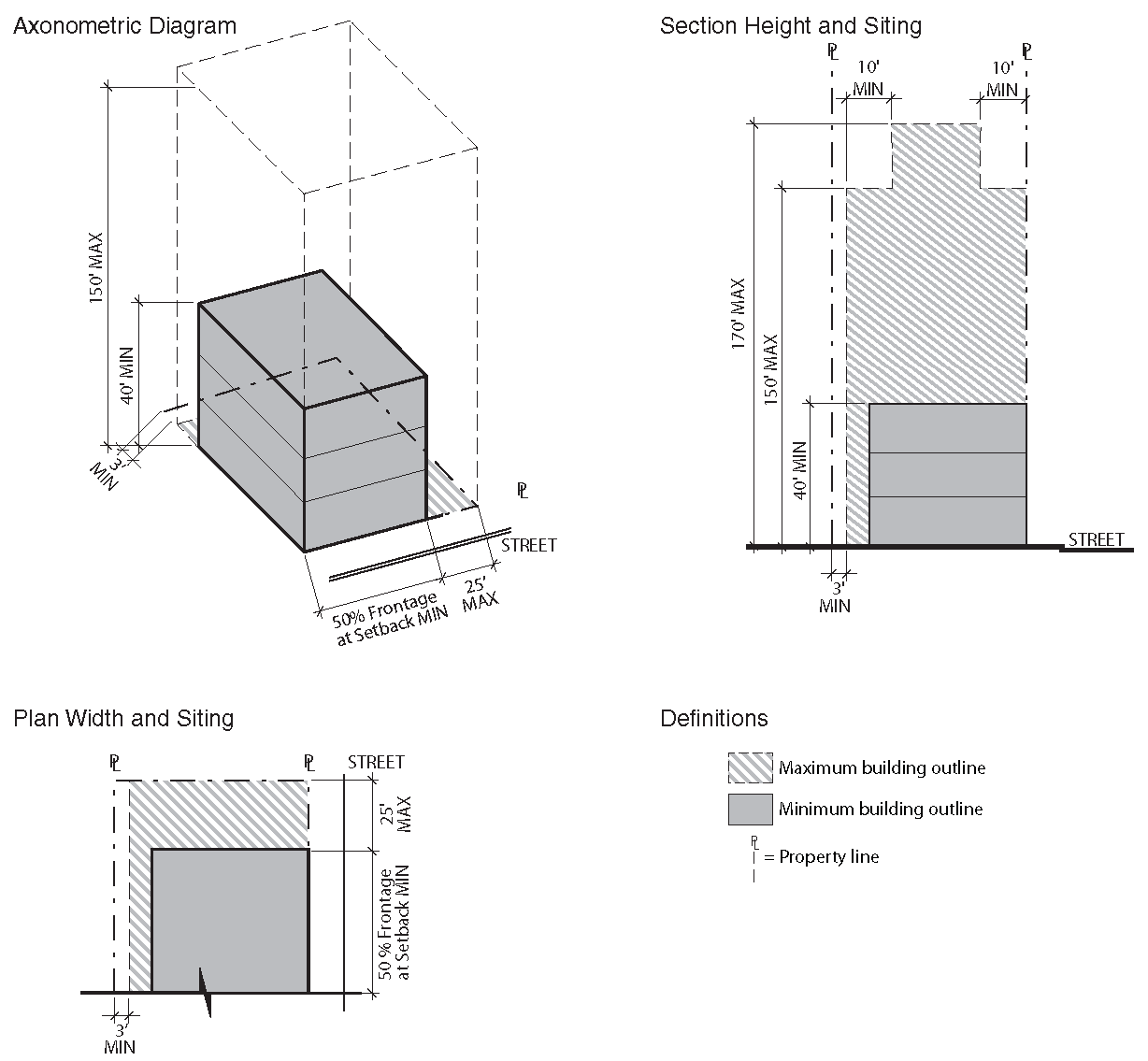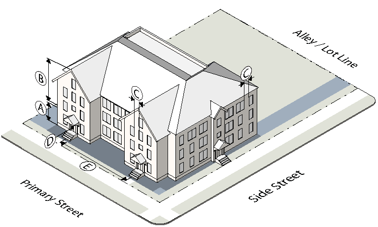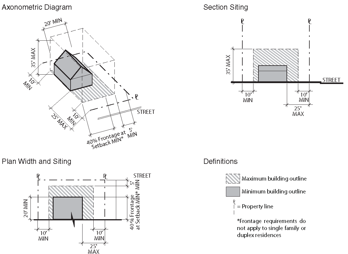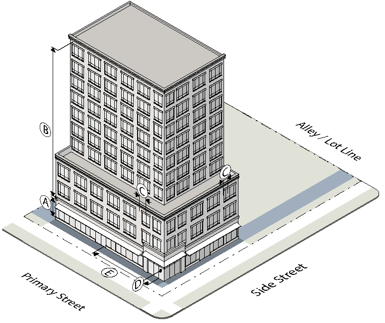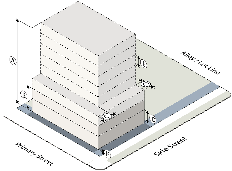 To establish the lot and building standards for your building or site go to the district pages for the subdistrict your property is located in (as determined in Step Two):