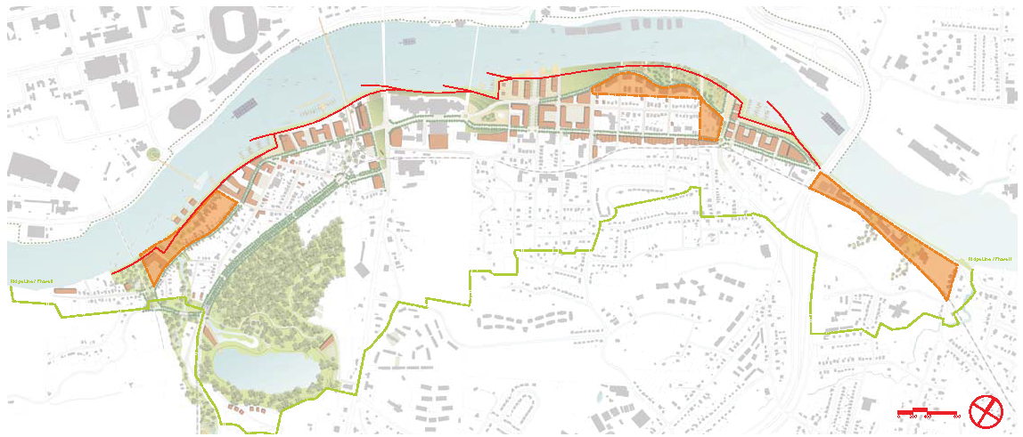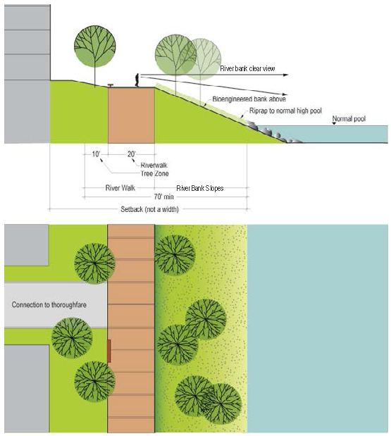 For the South Waterfront District go to Sec. 7.1.7 thru Sec. 7.1.9 for requirements that relate to the river, stream buffers and marinas.