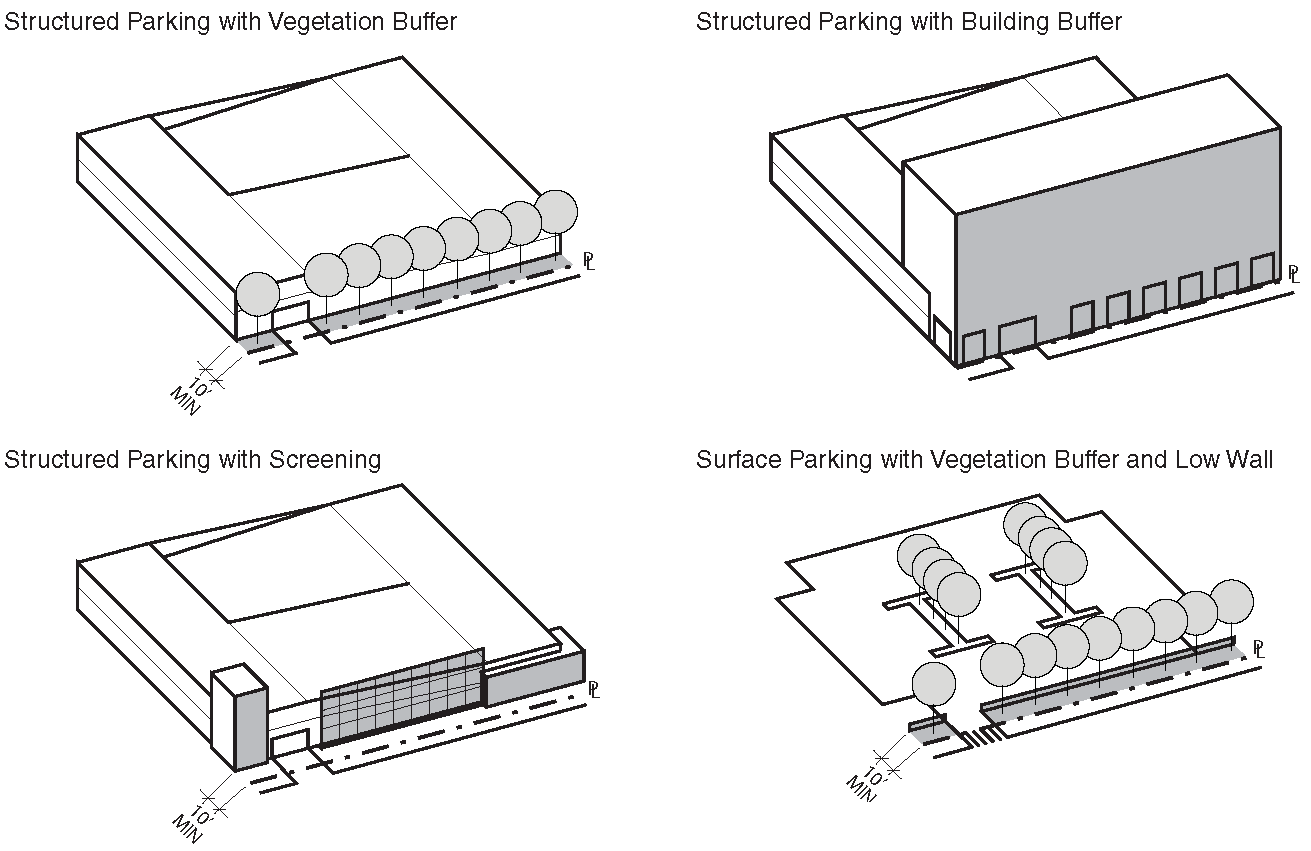 All Form Districts are subject to a series of site development standards, which cover requirements for such things as parking, landscaping, signs, lighting, outdoor storage and the streetscape.