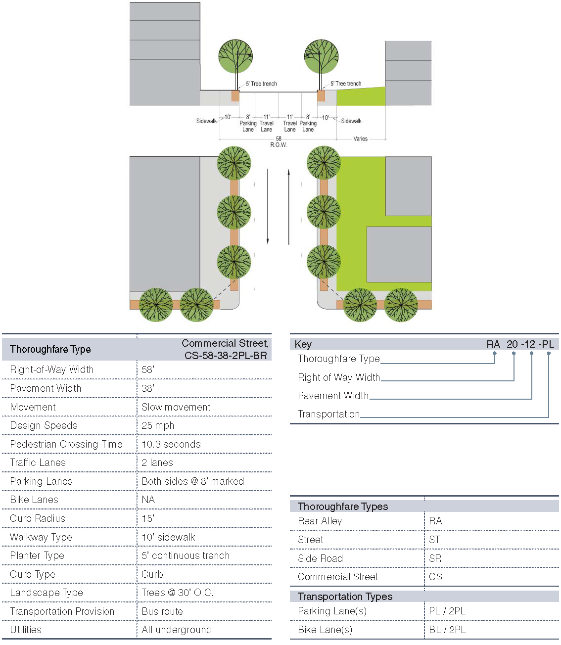 The following streetscape applies to all streets, except Cumberland Avenue.