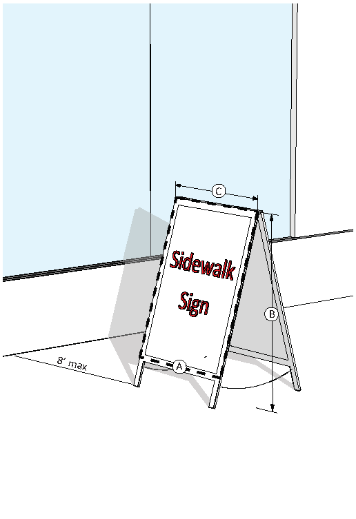 Outdoor display cannot impair the ability of pedestrians to use the sidewalk or parking areas and must comply with ADA clearance and accessibility.