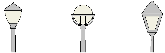 Non-cutoff (unshielded) fixtures can be used when the maximum initial lumens generated by each fixture is less than 9500 initial lamp lumens. These fixtures generally feature globes or vertical glass planes and must be coated with an internal white frosting to diffuse light.