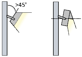 Flood light fixtures must either be aimed down at least 45 degrees from vertical, or the front of the fixture shielded so that no portion of the light bulb extends below the bottom edge of the shield.