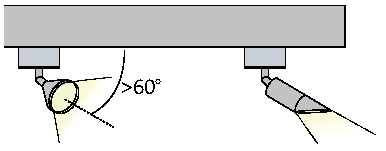 All flood lamps emitting 1,000 or more lumens must be aimed at least 60 degrees down from horizontal, or shielded so that the main beam is not visible from adjacent properties or the street right-of-way.