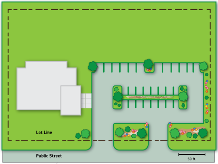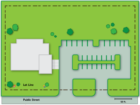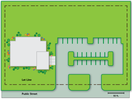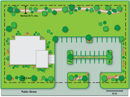Figure 520-79(2): Building Foundation Landscaping Example Assuming Mature Planting