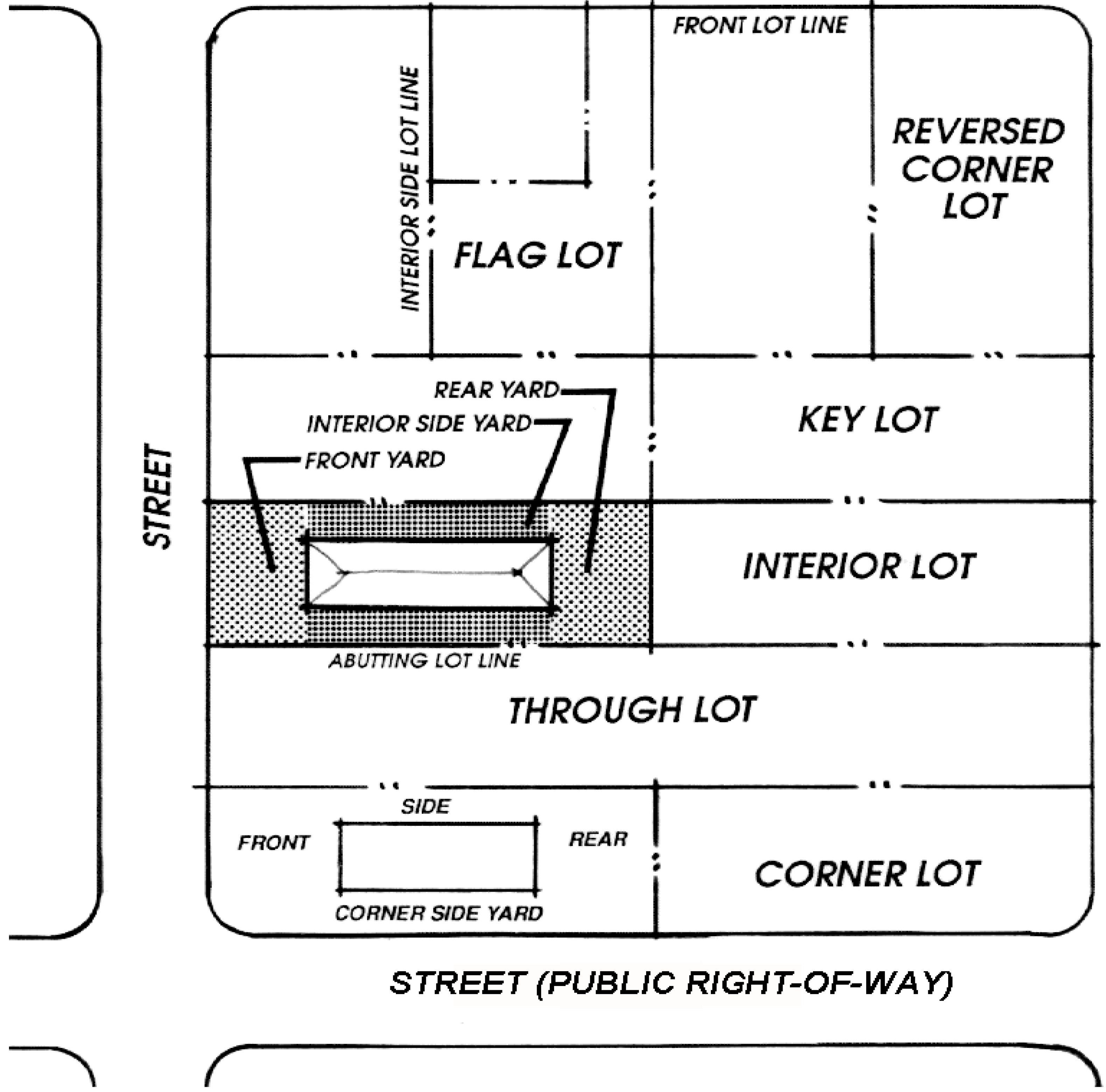 Yard, side, means an area extending from the required front yard to the required rear yard and from the side lot line to a setback line parallel thereto.