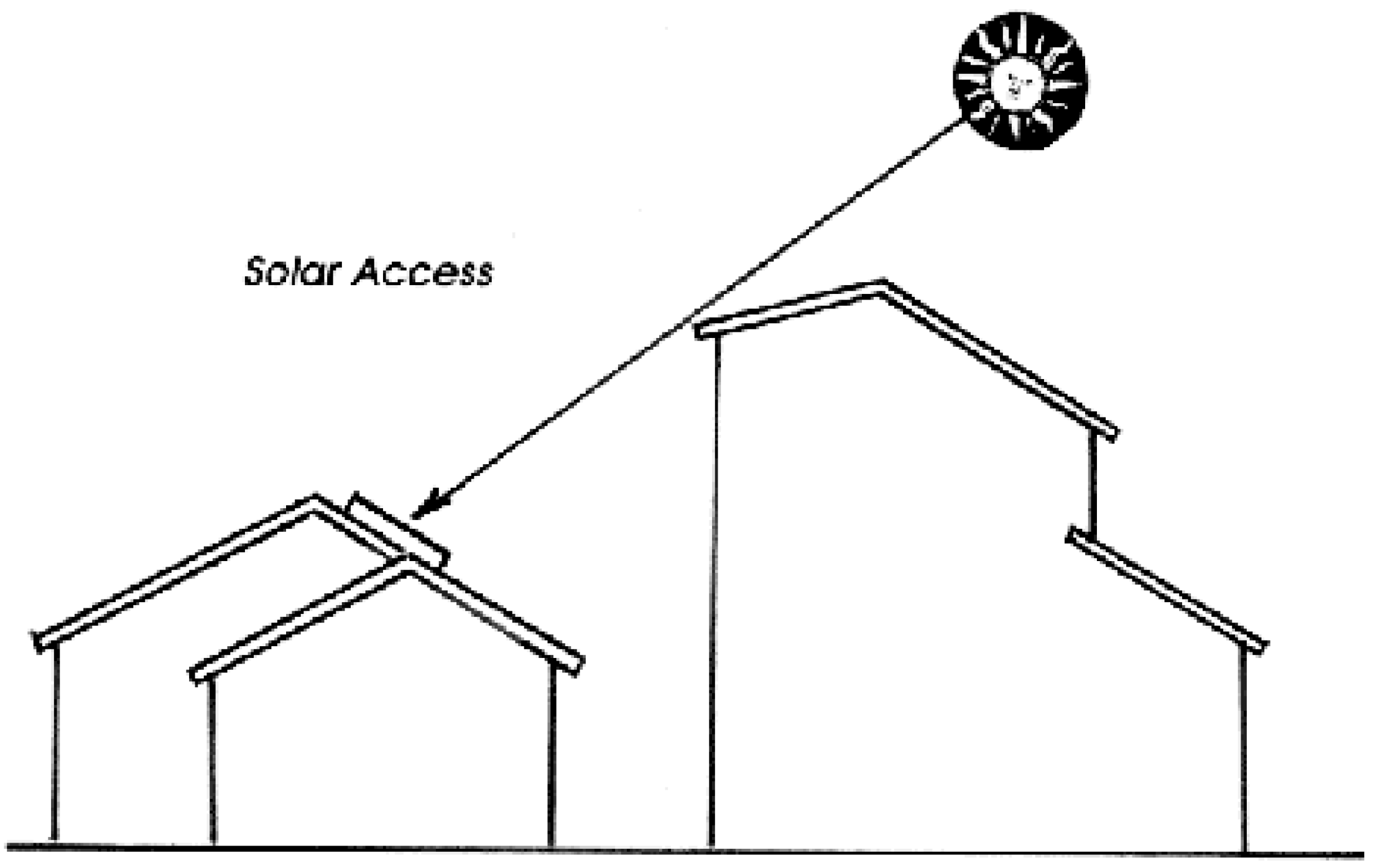 Solar access means the provision of direct sunlight to an area specified for solar energy collection when the sun's azimuth is within 45 degrees of true south.
