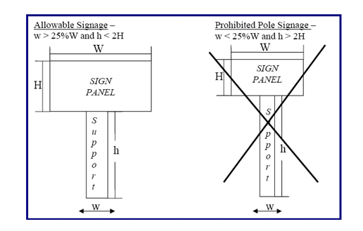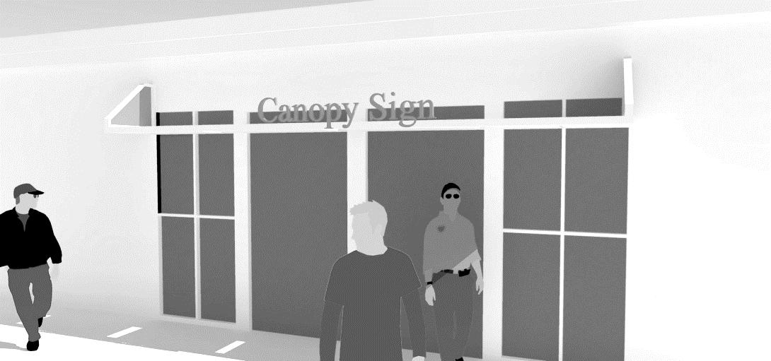 SUSPENDED SIGN — A sign that is hung from the underside of a canopy, or supported by/attached to a building or a post, as depicted in figure 11 below.