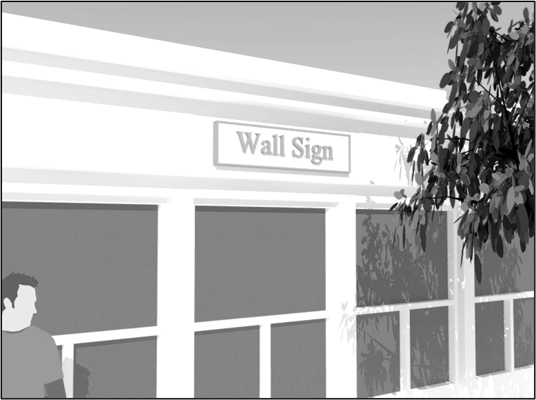 WALL SIGN — Any sign painted on, or attached to, an exterior wall or the lower slope of a mansard roof, as depicted in figure 12 below.