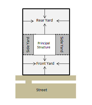 YARD, SIDE — Open space between a side lot line and the nearest projection of a principal structure and extending from the front yard to the rear yard.