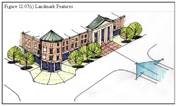 The space must be improved with a focal point such as a gazebo, public art or sculpture, pavilion, or paved patio area with a fountain or other iconic feature to help identify the park as a primary gathering place for the development. The area of this focal point shall be a minimum of 300 square feet, as shown in Figure 12.07(l), Public Space Illustrative.