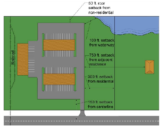 Minimize the impact of transportation logistics industries on the rural character of the county by requiring adequate landscape screening, buffering and setbacks.