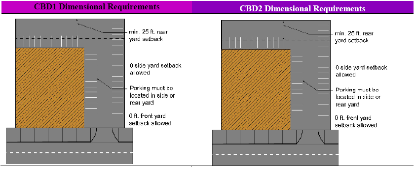 Lot Sizes. There are no minimum lot area or width requirements in the CBD1 and CBD2 districts.