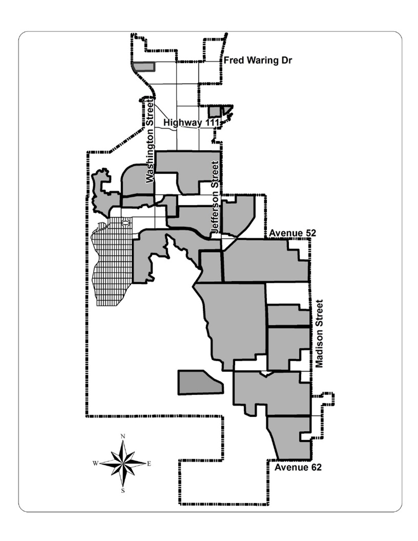 Adoption of Map. The boundaries of the zoning districts established in this zoning code shall be shown on that map entitled "City of La Quinta Official Zoning Map" on file with the director and available for public examination and purchase.