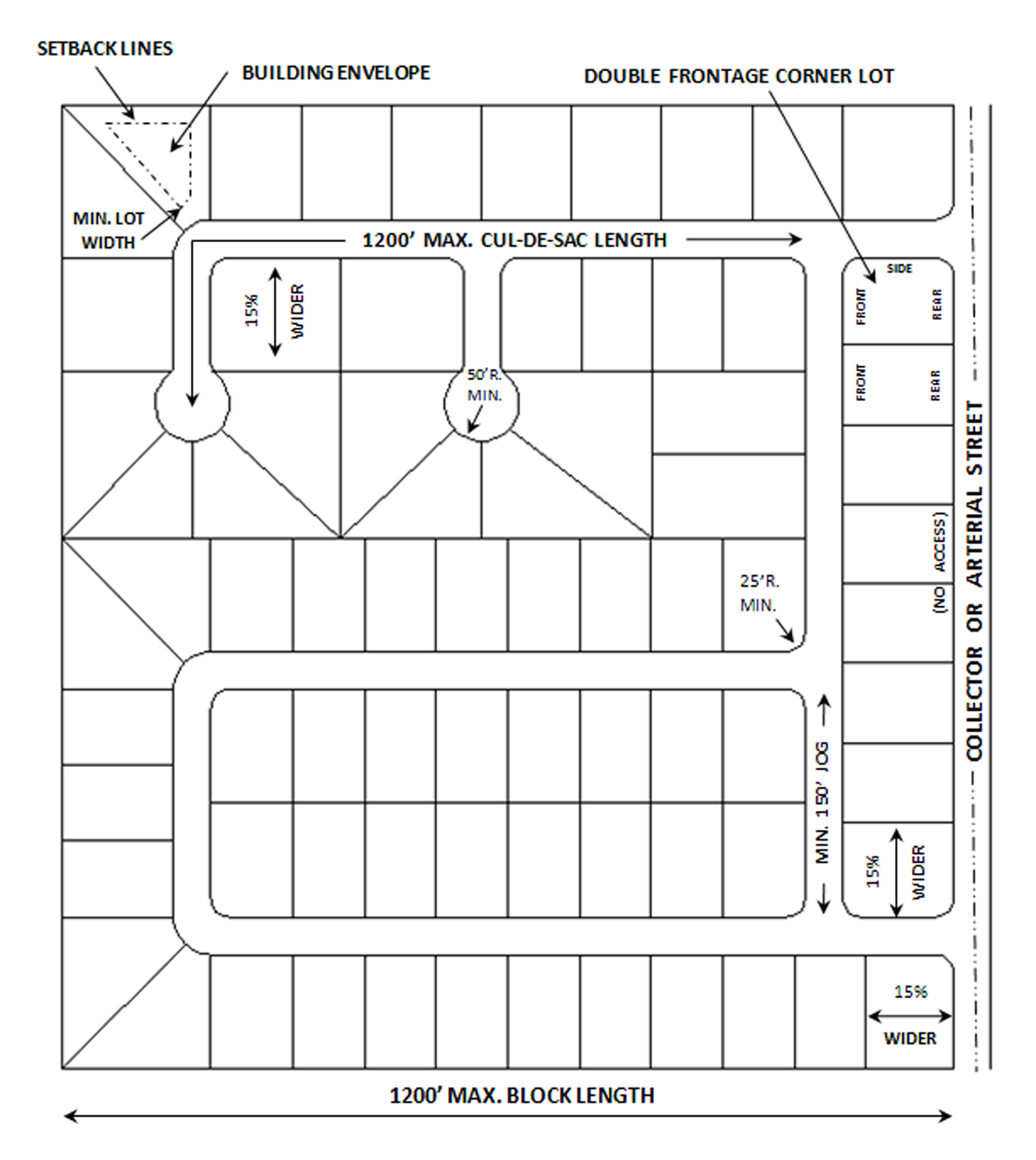Have a minimum width of fifty (50) feet;