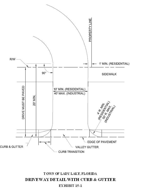 On roads with curb and gutter, valley gutters shall be required in driveways and shall be placed in line with the gutter line along the edge of road or as otherwise provided.