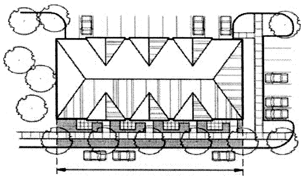 Landscaped areas less than eight (8) feet wide shall be landscaped with moderate, low, or very low hydrozone plants (see Appendix A). Public street right-of-way plantings are excepted from this requirement.