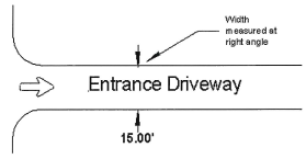 The width of entrance and/or exit driveways is measured at right angles to the driveway.