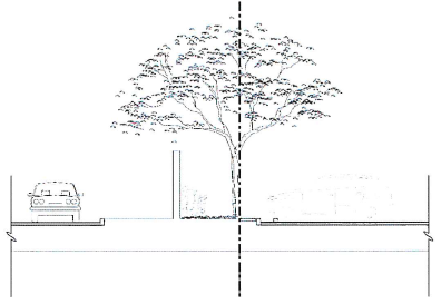 The sidewalk must remain parallel to the street.