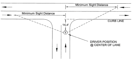 Sight distance along street. Refer to the street design standards (section 89-44(f)). All entrance and exit driveways shall be so located that vehicles approaching or using them will be able to obtain adequate sight distance in both directions along the street in order to maneuver safely and without interfering with traffic.