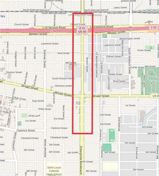 All intersections shall be reviewed for the appropriate line of sight distance. The line of sight shall be based upon the City of Lake Charles Zoning Ordinance No. 10598 Section 5-203. No buildings, structures, parking or plantings shall be allowed within the line of sight.