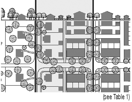 A system of joint use driveways and cross access servitudes shall be established wherever feasible within the TND. Building sites shall incorporate the following:
