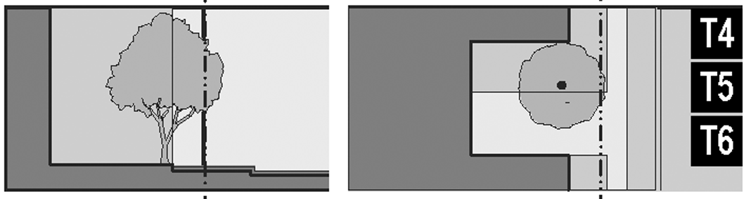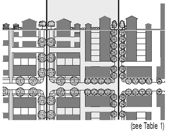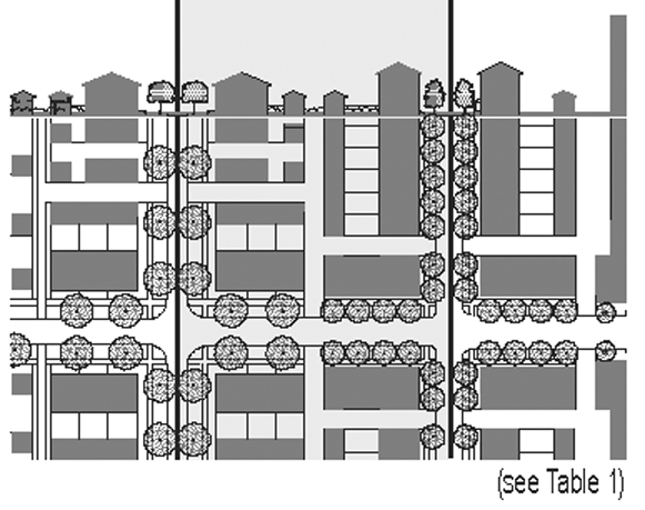Streets affronting civic buildings or civic spaces shall follow the standards of the underlying use area.