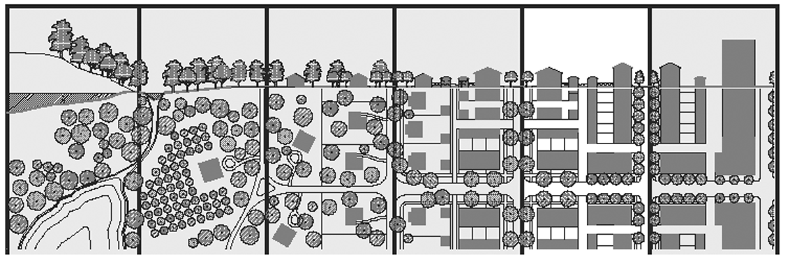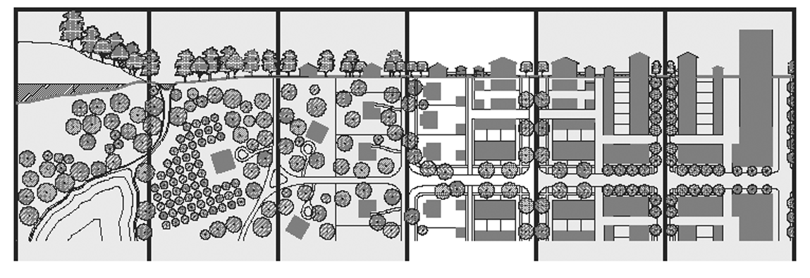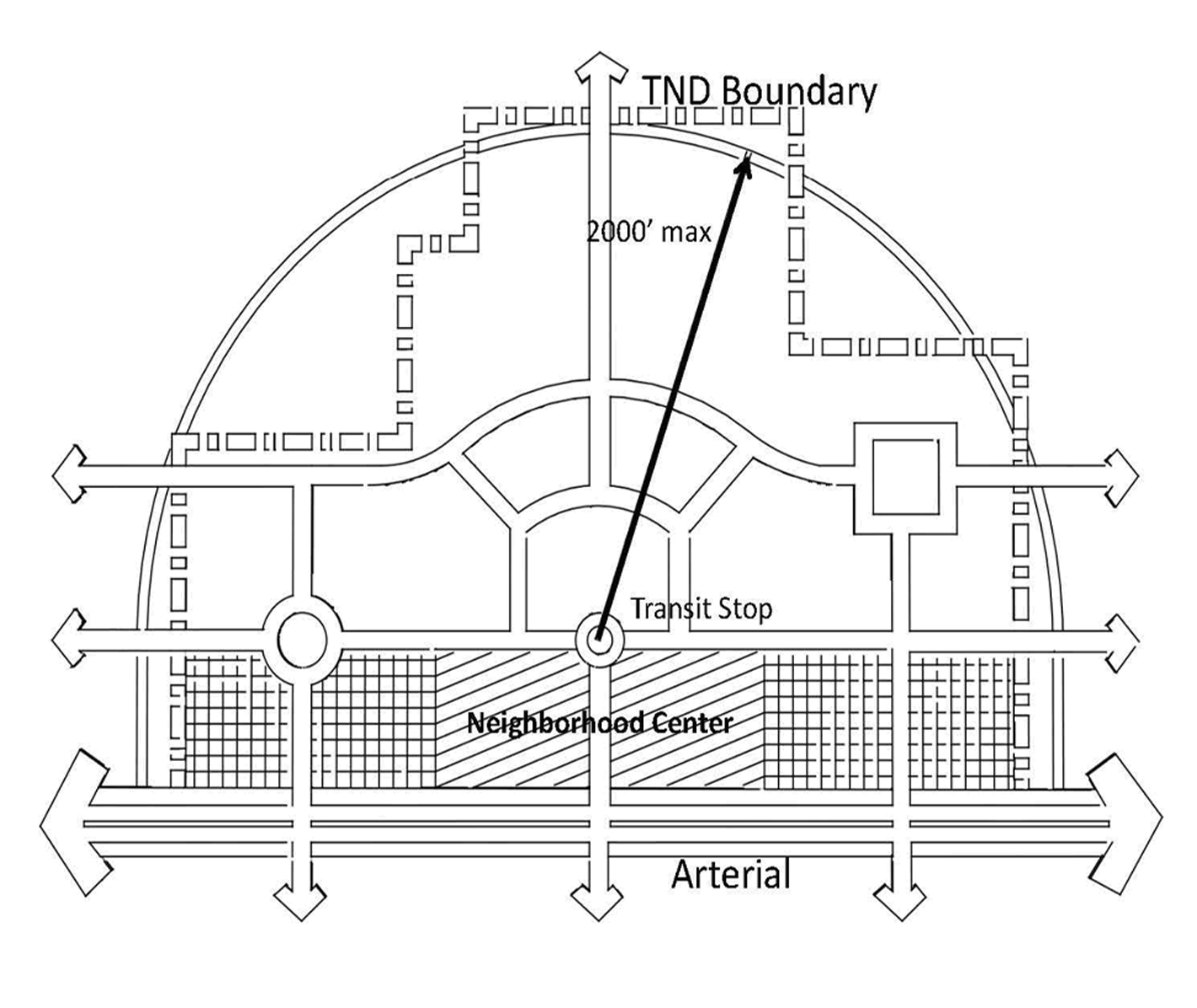 Where public transit service is available or planned, convenient access to transit stops should be provided. If provided, access to the transit stops should be within a five minute walk from the Neighborhood Center Area. Where transit shelters are provided, they should be placed in highly visible locations that promote security through surveillance, and should be well lighted.