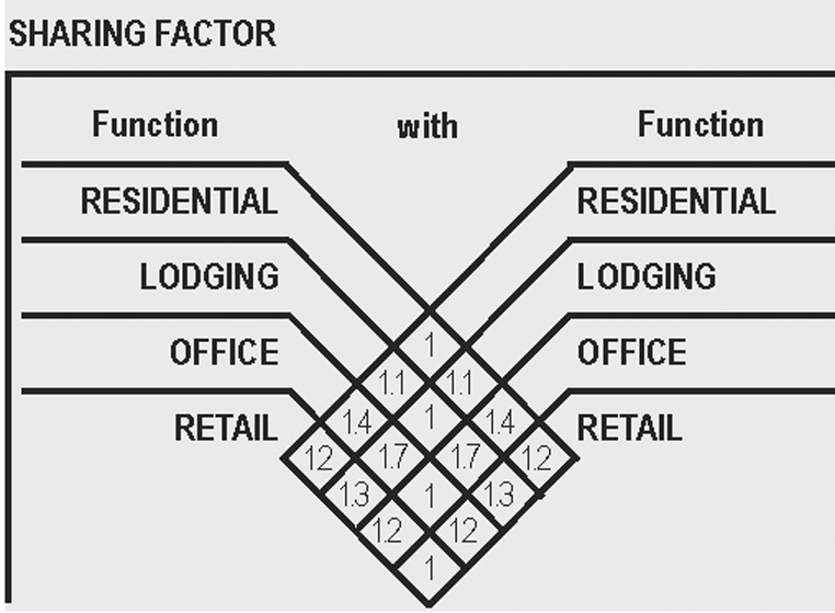 If a residential use shares parking with a retail use other than lodging uses, eating and drinking establishments or entertainment uses, the parking requirement for the residential use may be reduced by 30 per cent, provided that the reduction does not exceed the minimum parking requirement for the retail and service use.