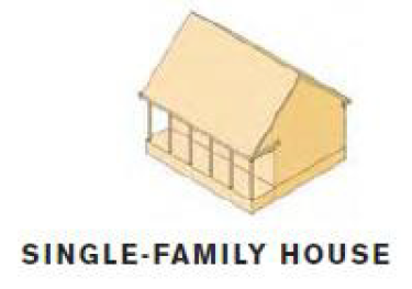 Single-family attached and detached dwellings provided it does not exceed ten dwelling units per acre.
