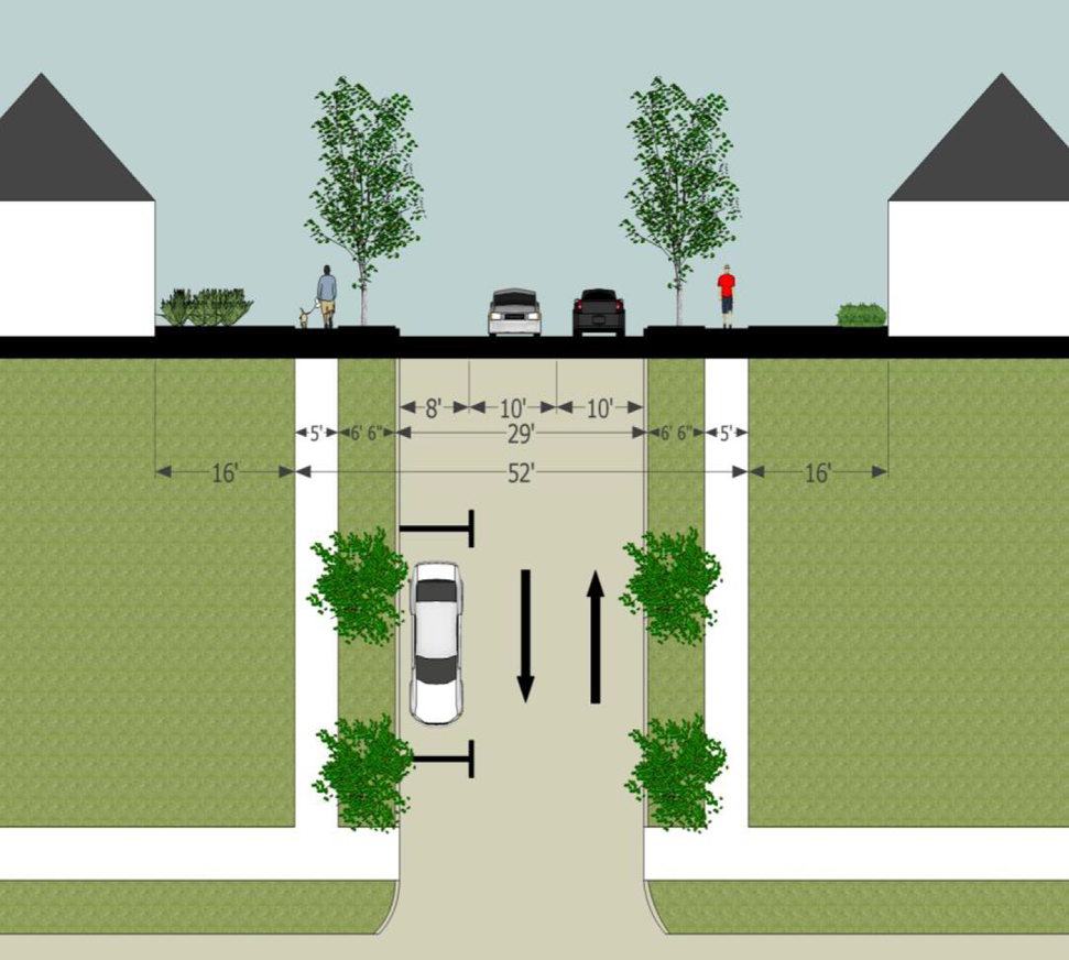 Street Cross Sections. The following street sections shall be applied to the TND design. The applicant may propose additional street cross sections specific to the proposed development with the preliminary plat. All pavement construction requirements shall be in accordance with the City of Lake Charles Subdivision Regulations. Any proposed street cross sections differing from those contained in the attachments shall be required to be reviewed and approved by the Department of Public Works.