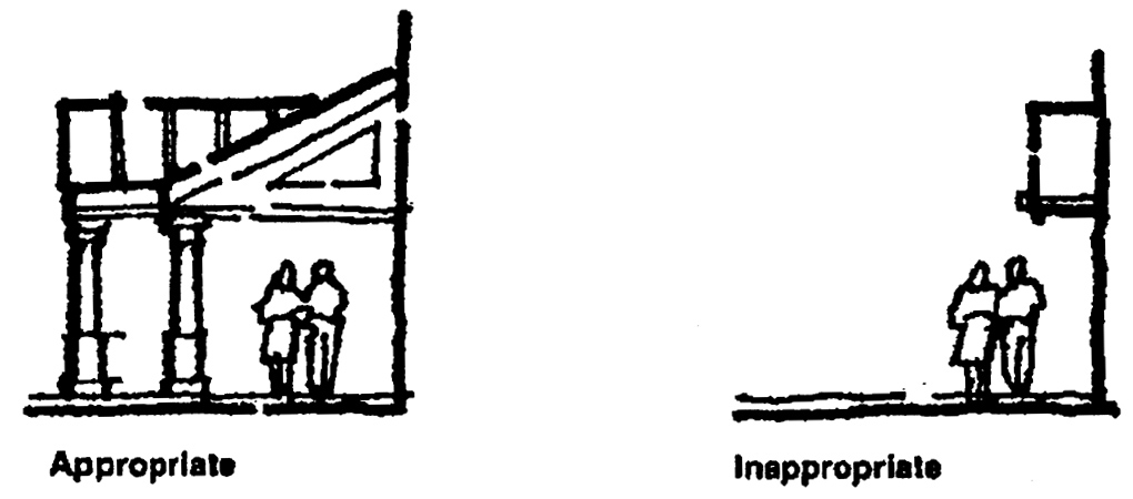 The variety of protective features, such as arcades and awnings, building overhangs, landscaping;
