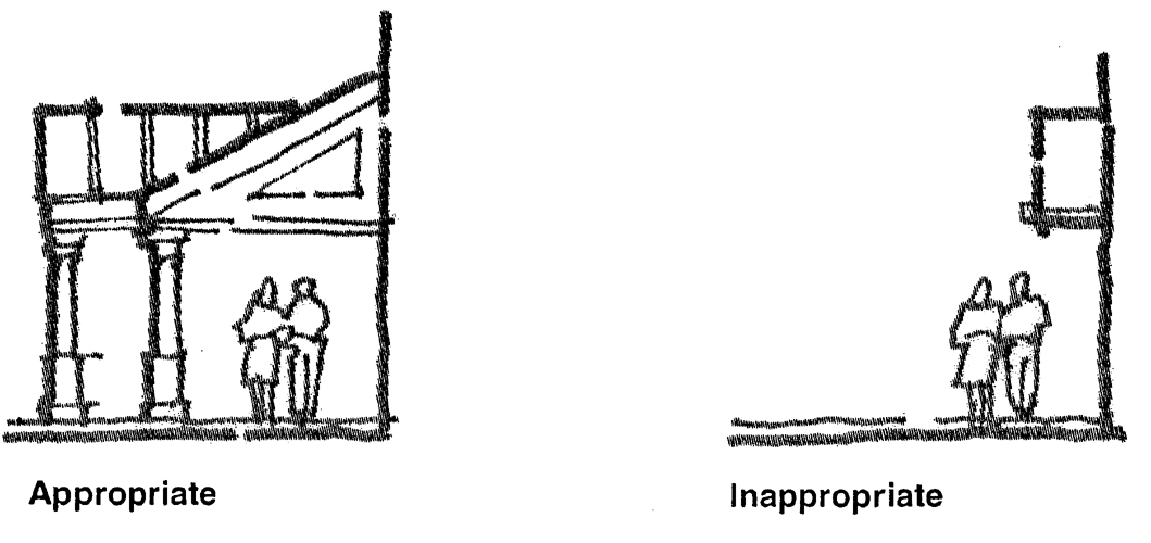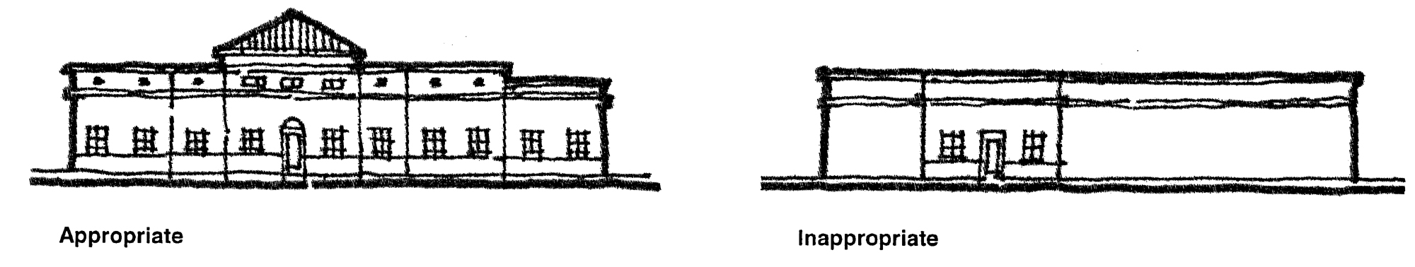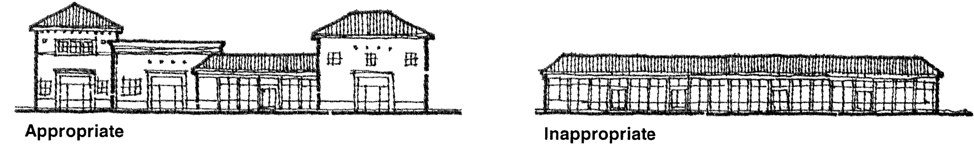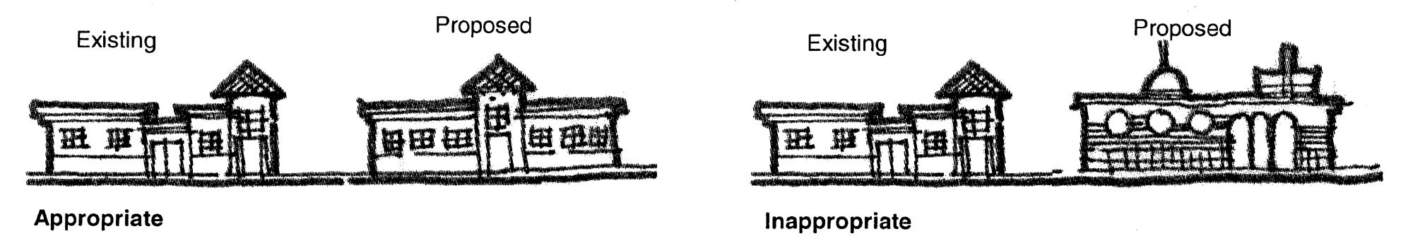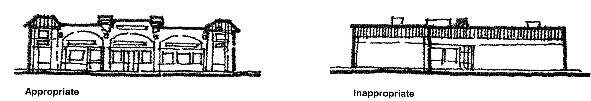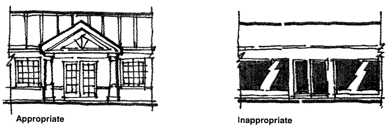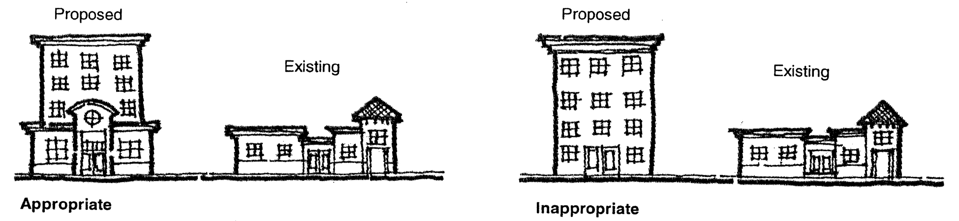 Creation of the opportunity for new development to respect existing scale, style, and character, while preserving the positive aspects of the corridor.
