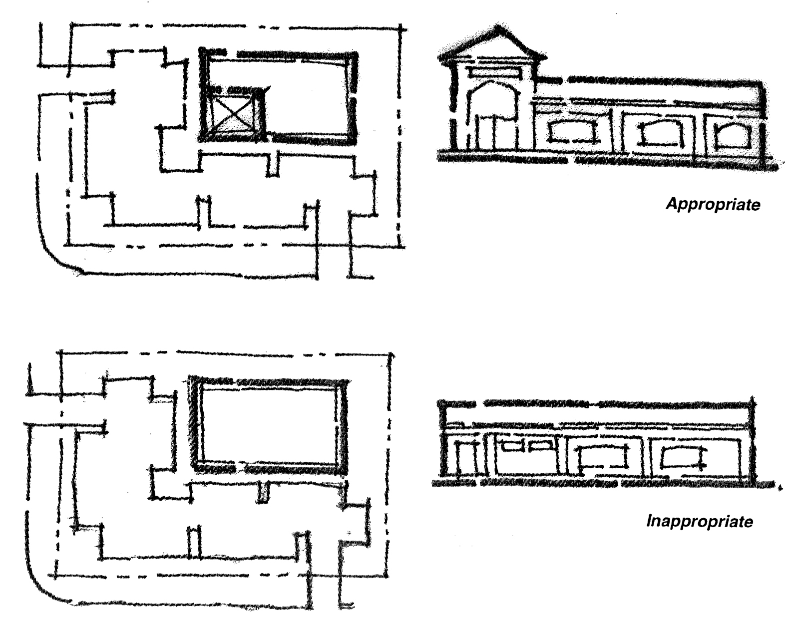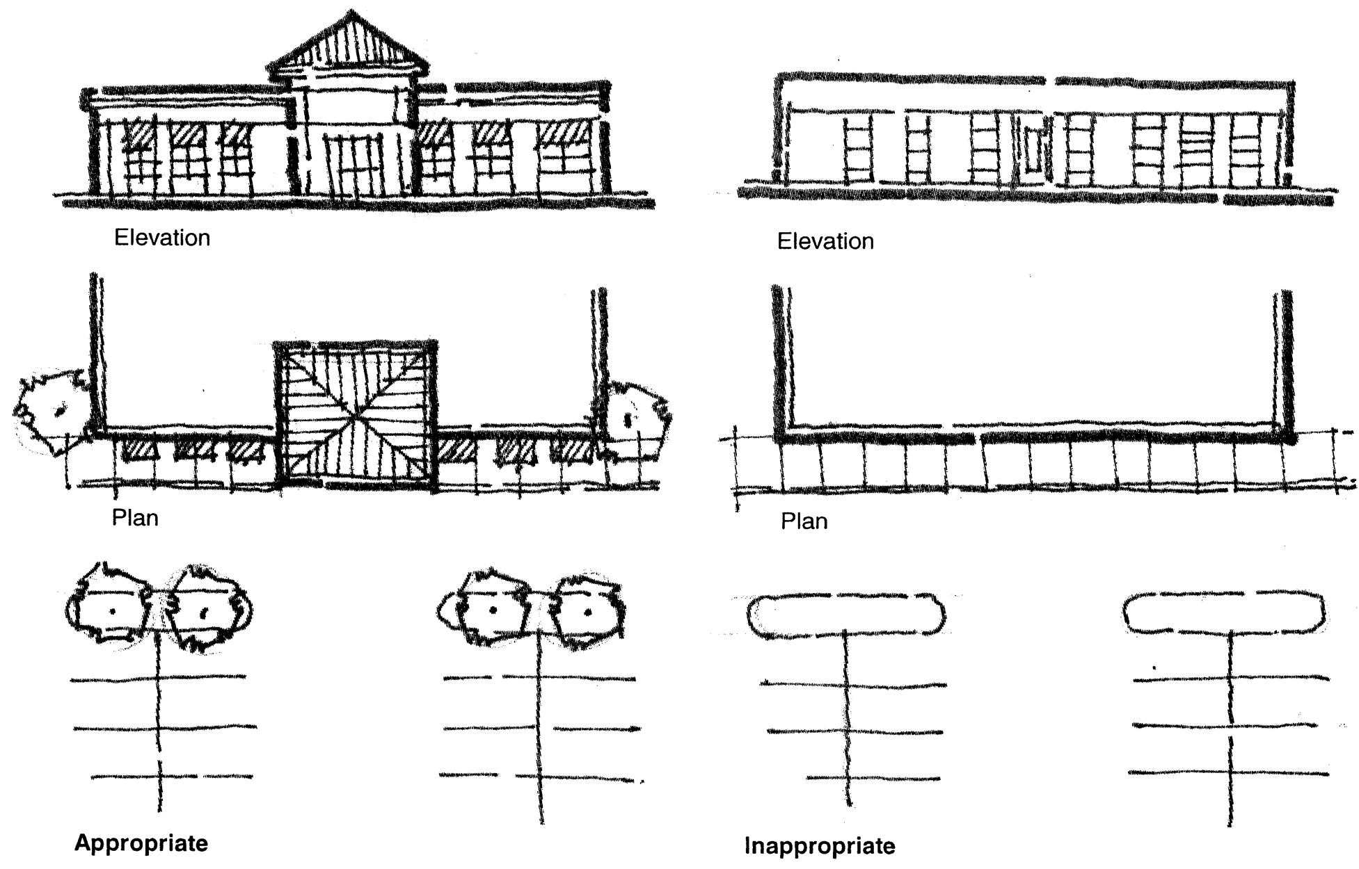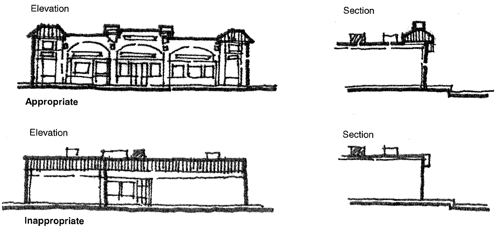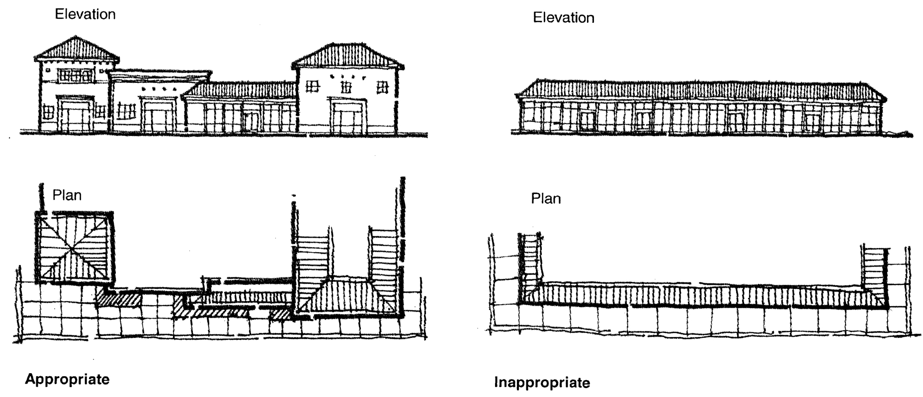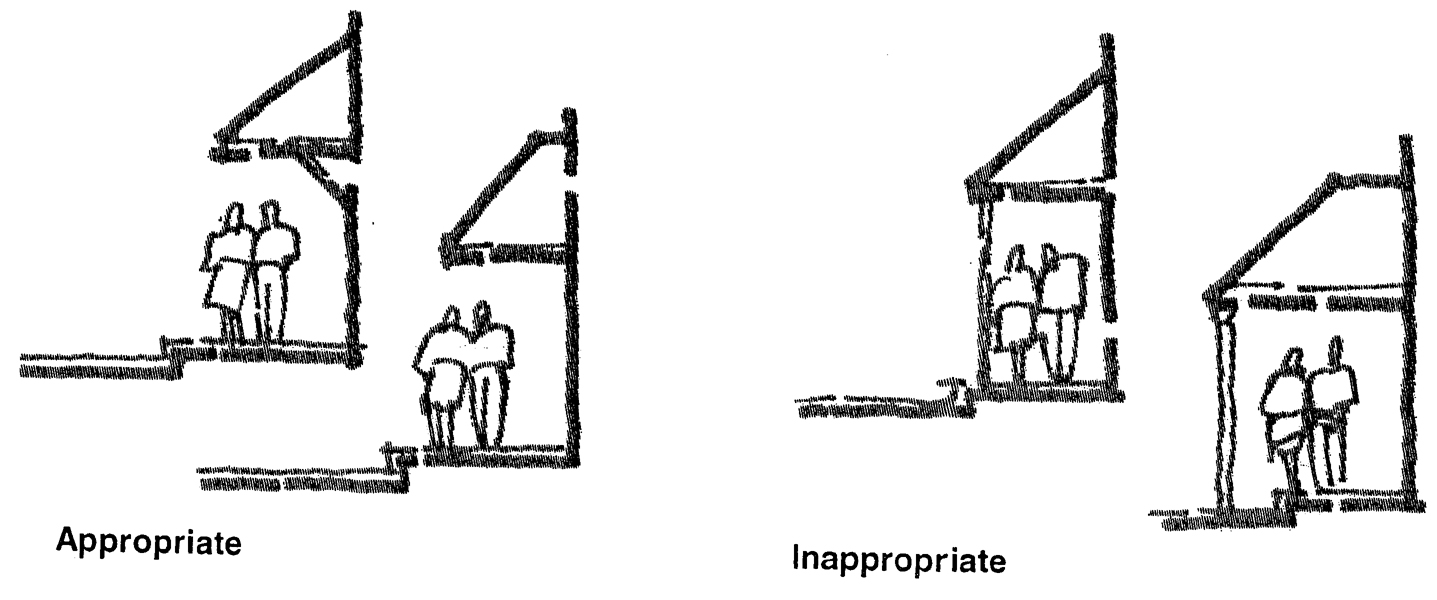 Creation of the opportunity for new development to respect existing scale, style, and character, while preserving the positive aspects of the corridor.