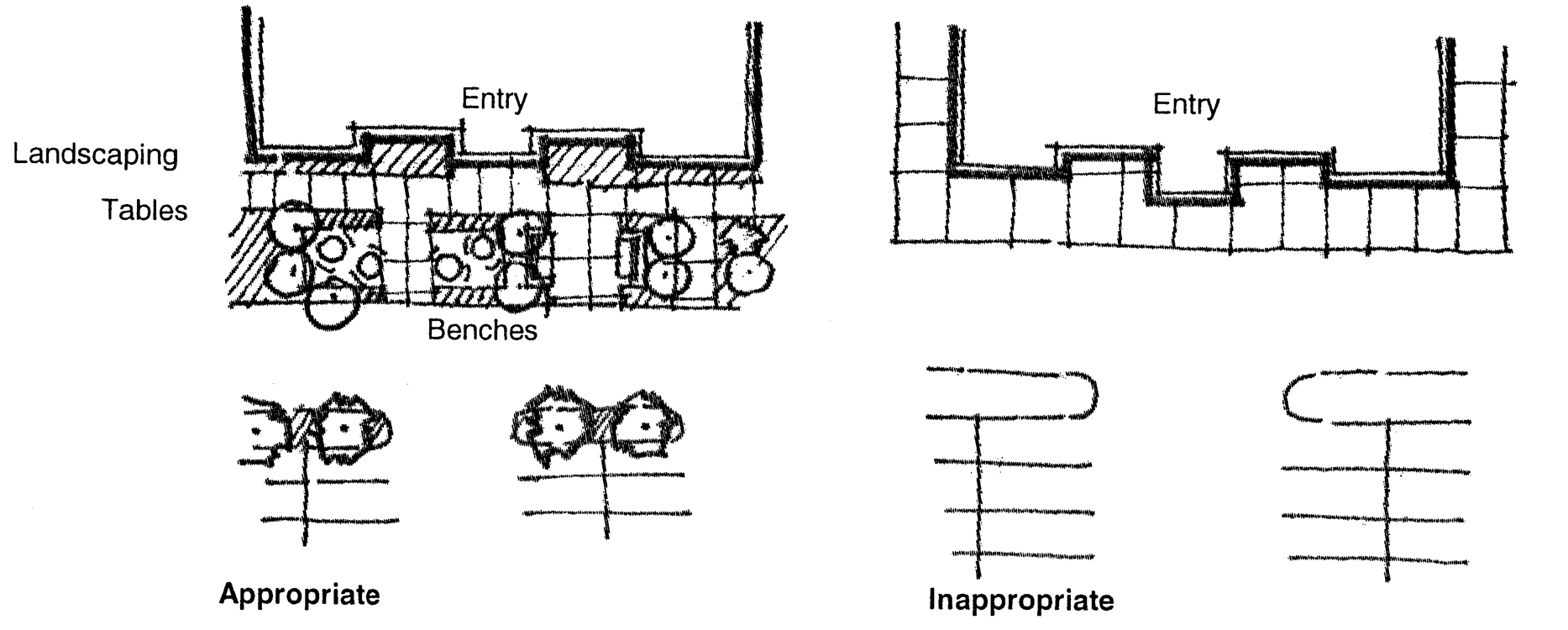 Pedestrian circulation systems shall include gathering/sitting areas.