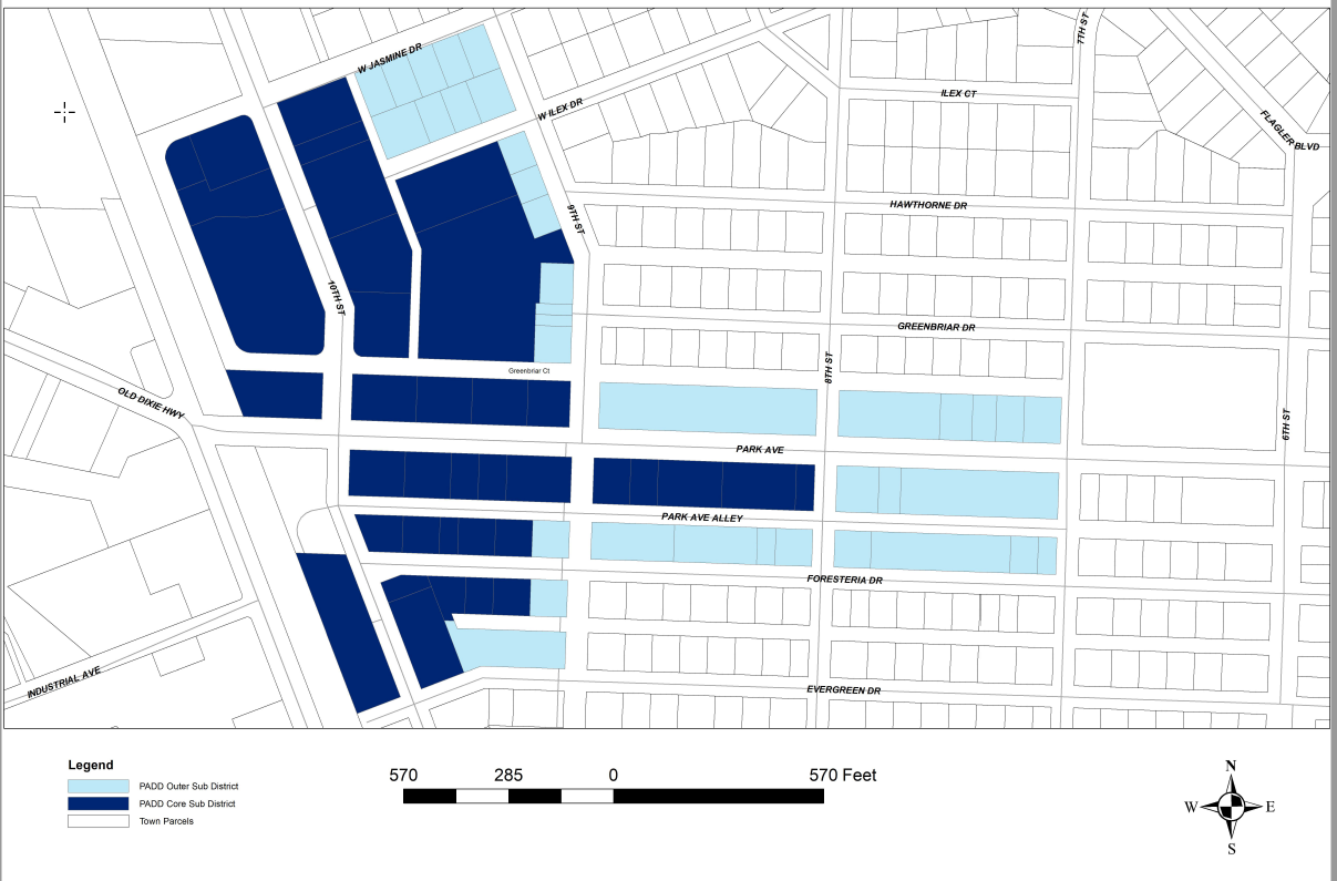 On the west side of Federal Highway and the east side of Federal Highway (between Jasmine Drive and Cypress Drive), the maximum length and perimeter of a block shall be as established prior to the adoption of this ordinance.