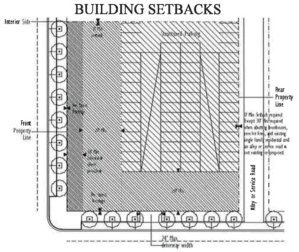 There shall be a minimum setback of ten feet on both sides for the expansion of the sidewalk.