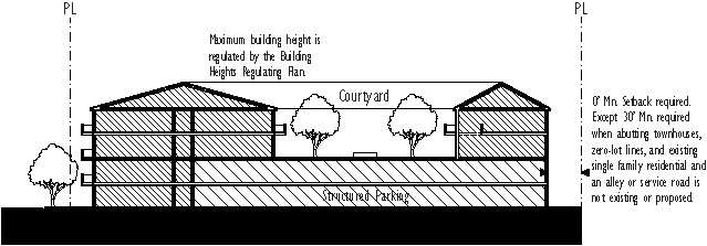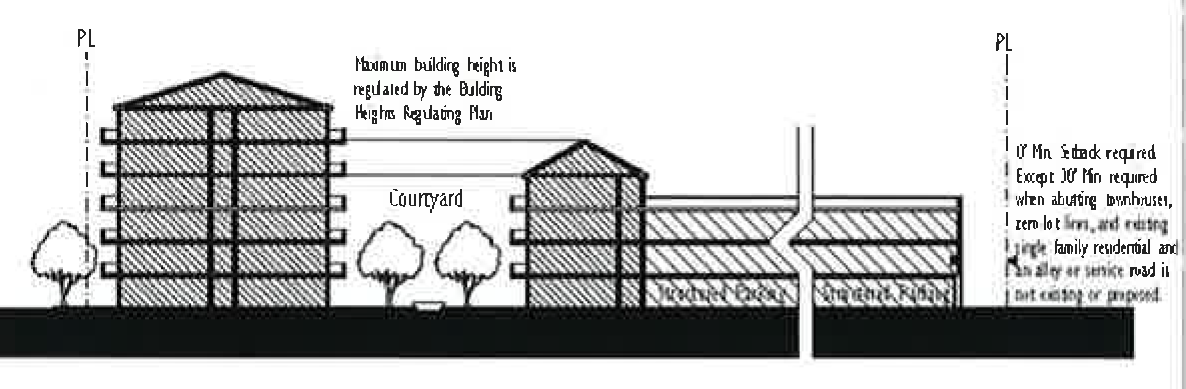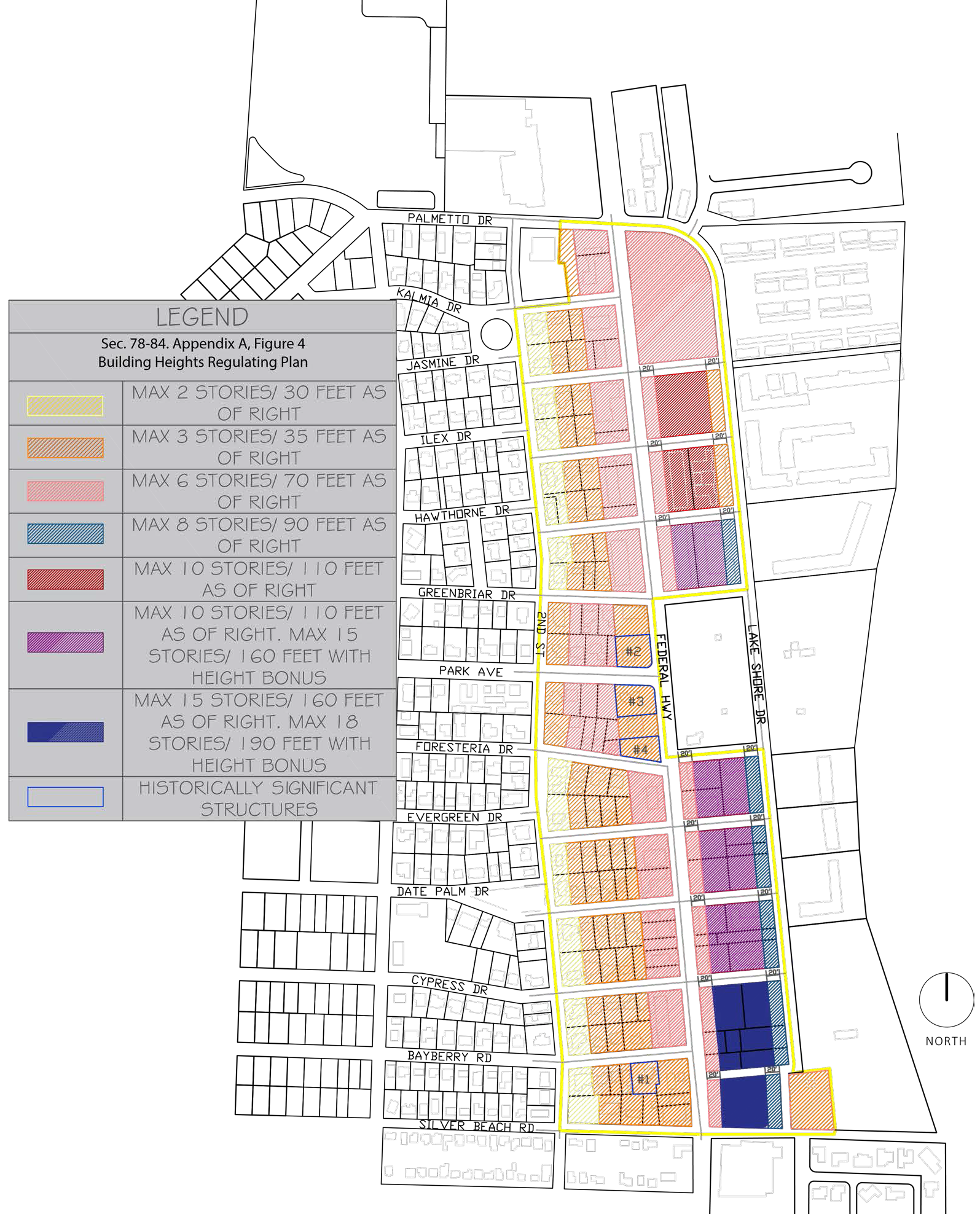 The building heights regulating plan. The building heights regulating plan is intended to delineate the areas where different types of development intensities are permitted in order to establish compatibility with the single-family neighborhoods. The building heights regulating plan is found in Appendix A of this code section as Figure 4.