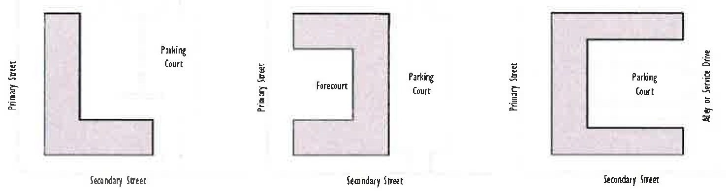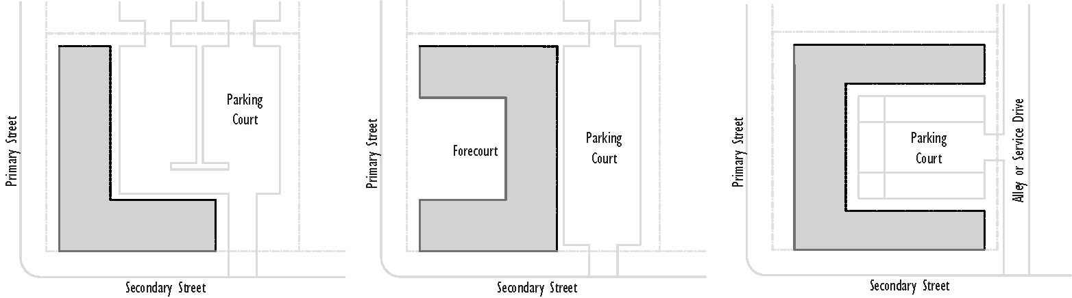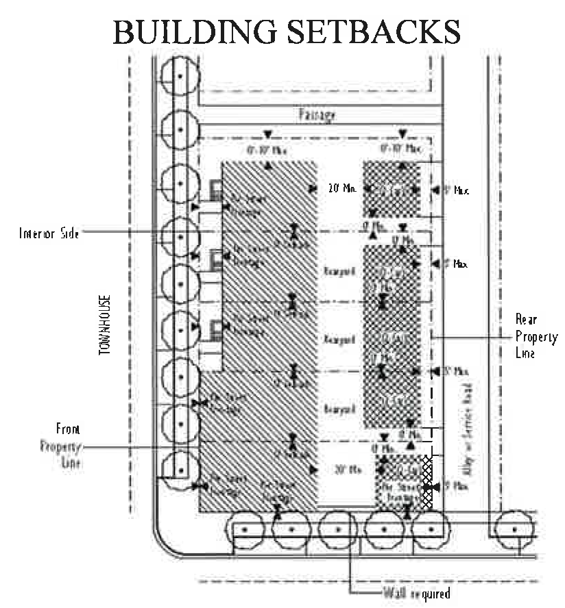 Building placement regulating diagrams and modified dimensional standards.