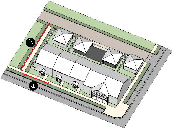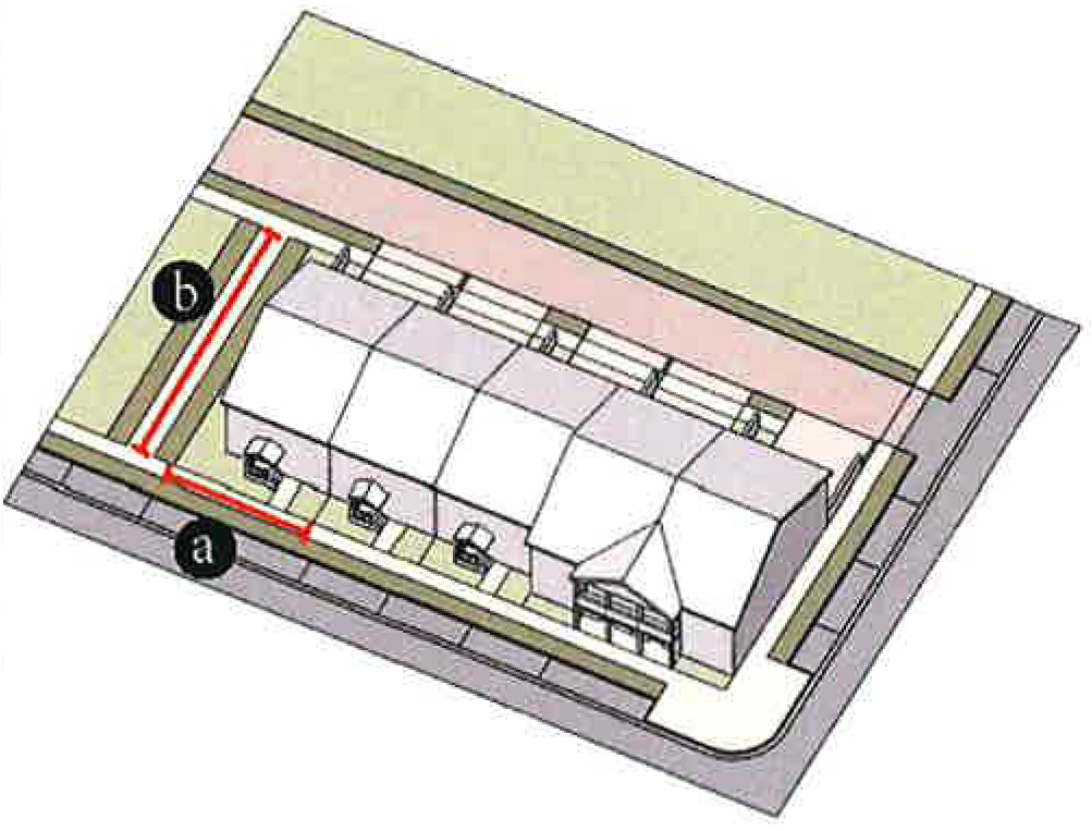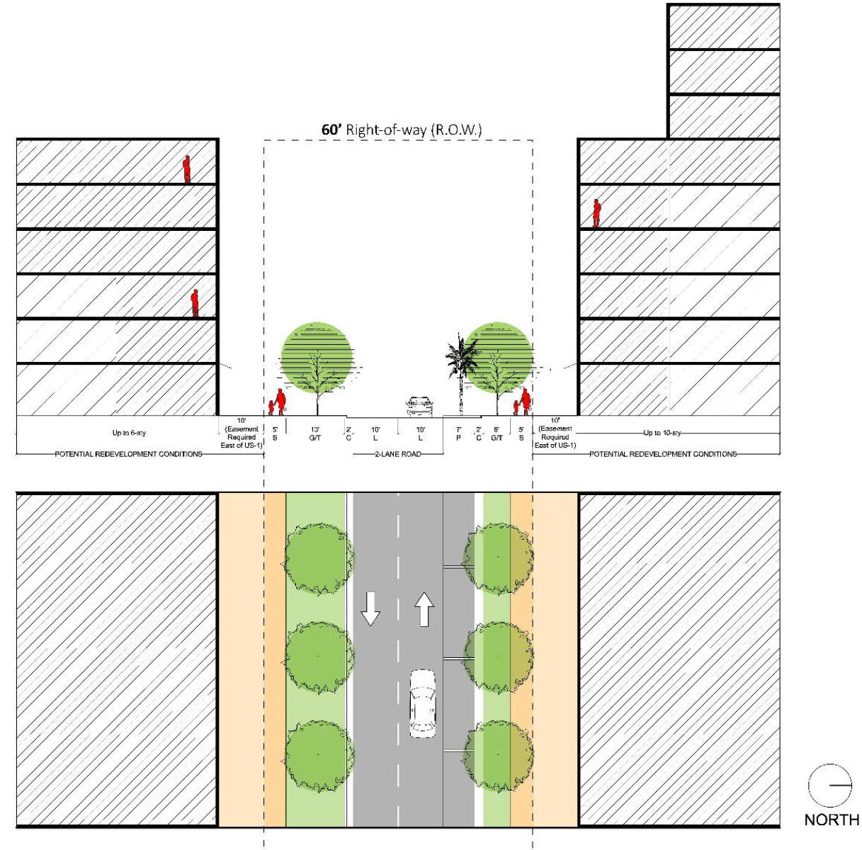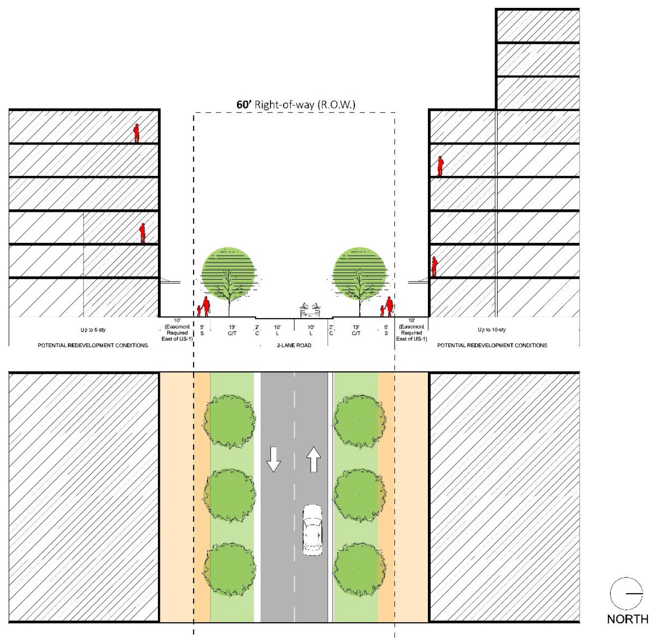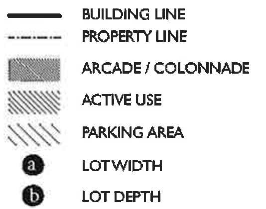 Secondary/greenway streets with no parking street design. As demonstrated in Figure 78-84(f)(6) below: