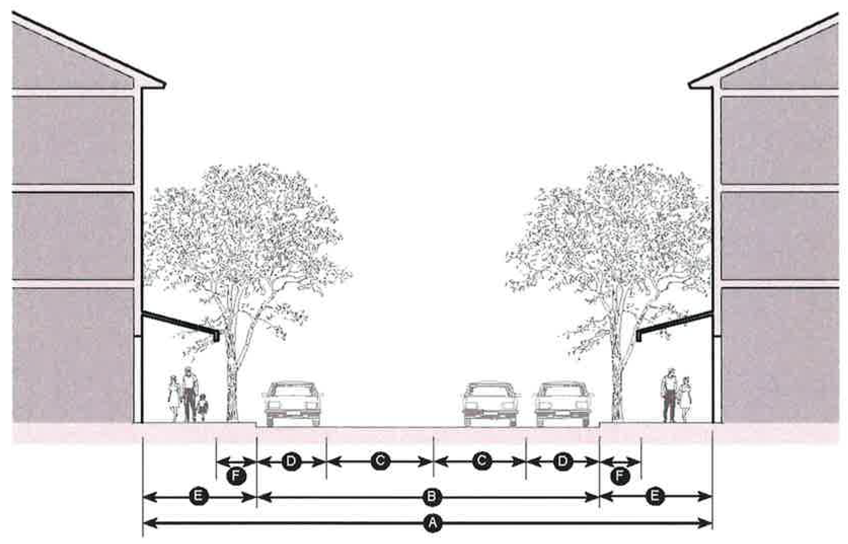 Figure 78-84(f)(9): Tertiary Streets with Parking, Both Sides Street Design