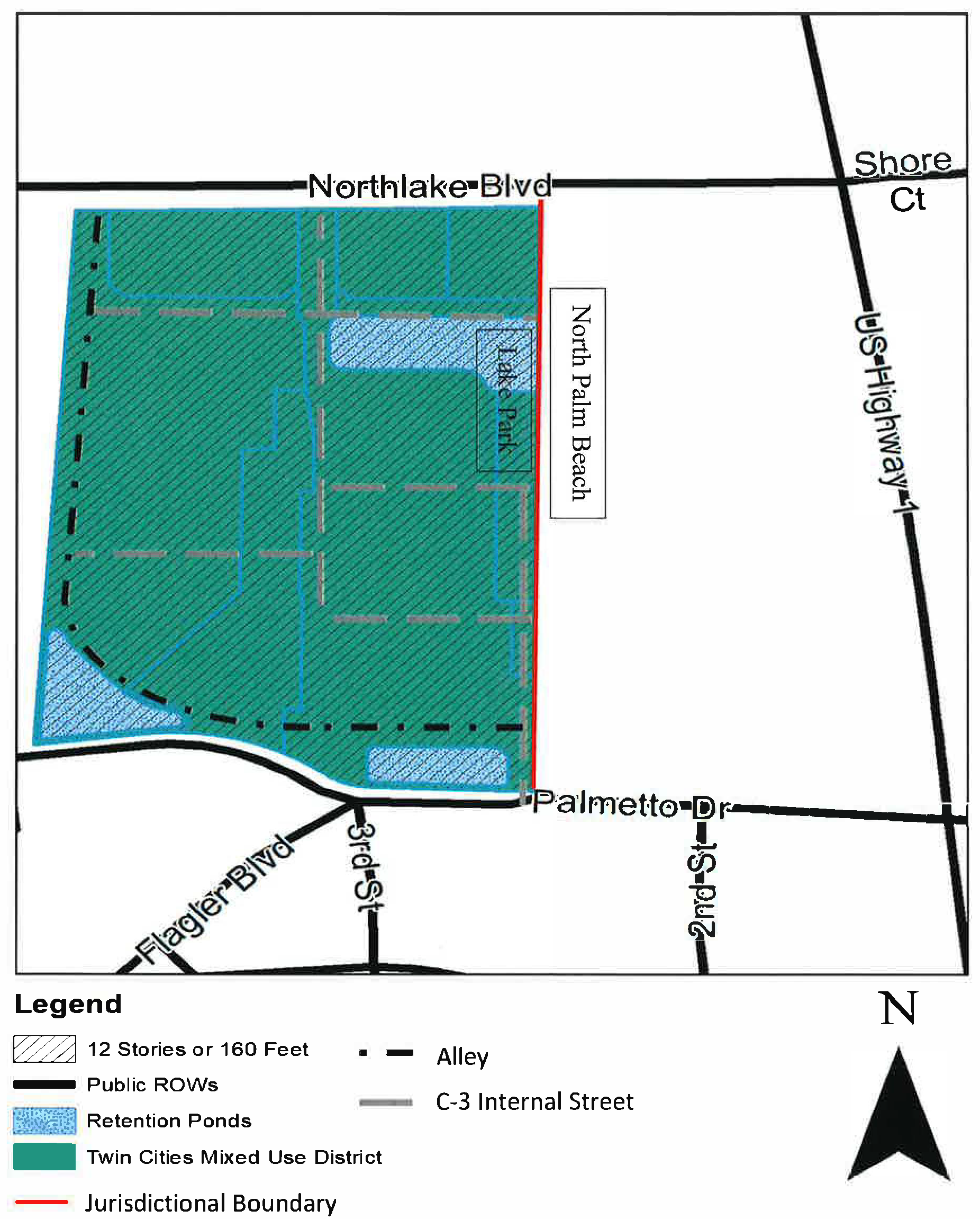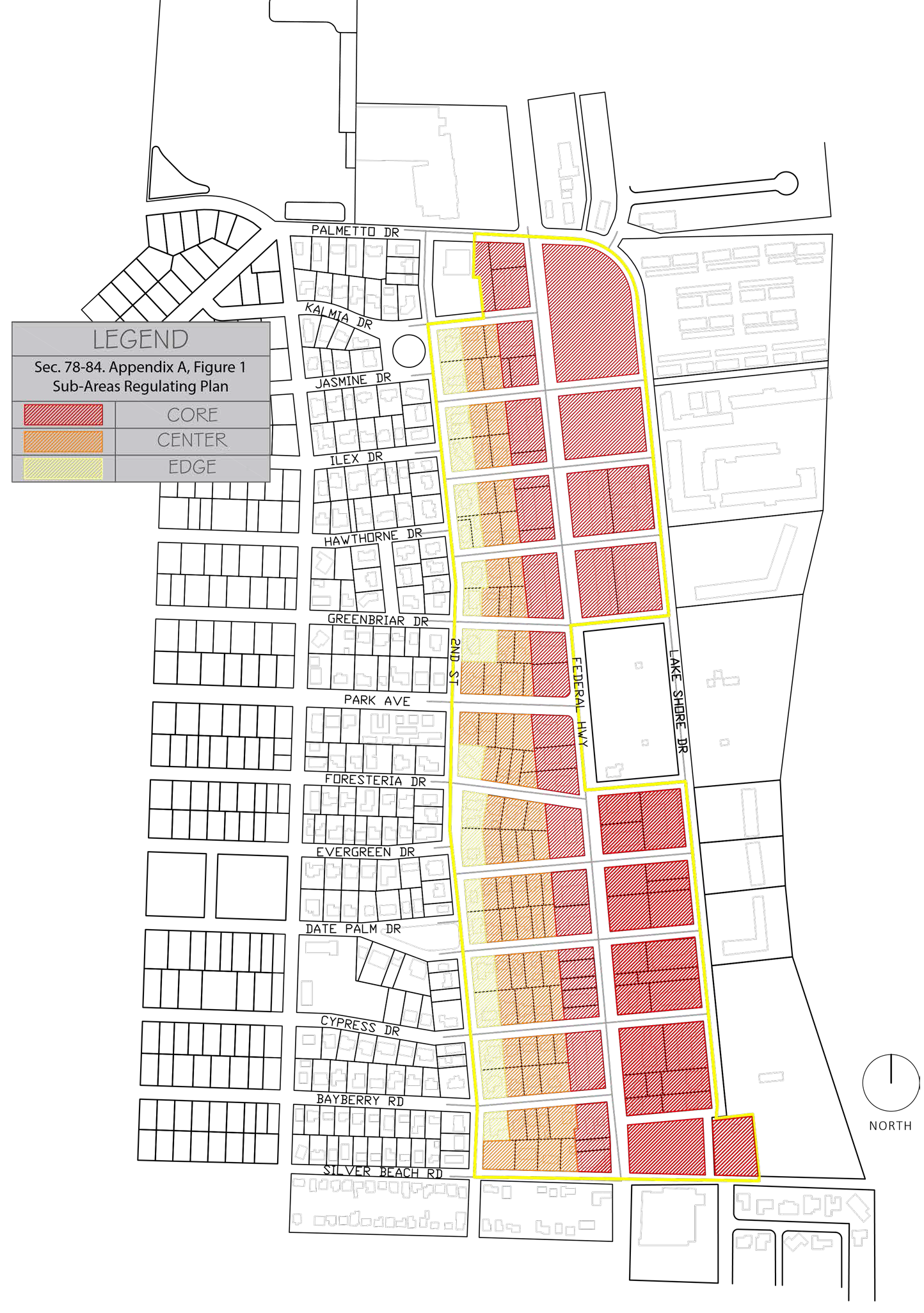 Structures within the development parcels in the other Core Sub-Areas of the Federal Highway Mixed Use District Overlay, north of Cypress Drive are entitled to an exemption cap of three stories, or 33 feet.