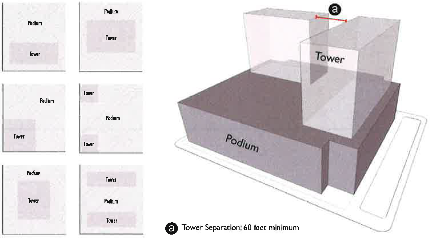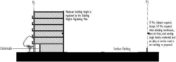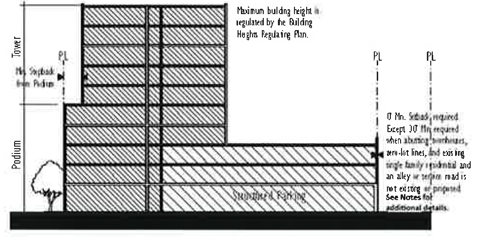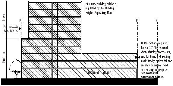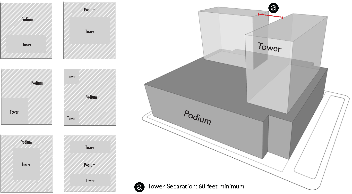 Buildings higher than six stories shall be developed according to the tower building type standards.