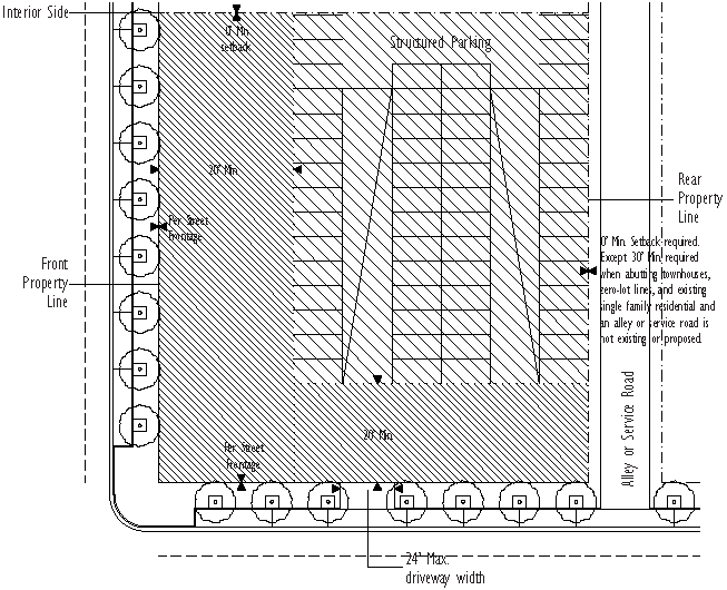 Figure 78-84(f)(8): Tertiary Streets with No Parking Street Design