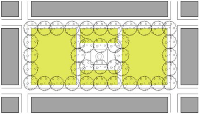 Tree surrounds a minimum dimension of five feet by five feet shall be provided on both sides along the street edge to accommodate the required street trees.