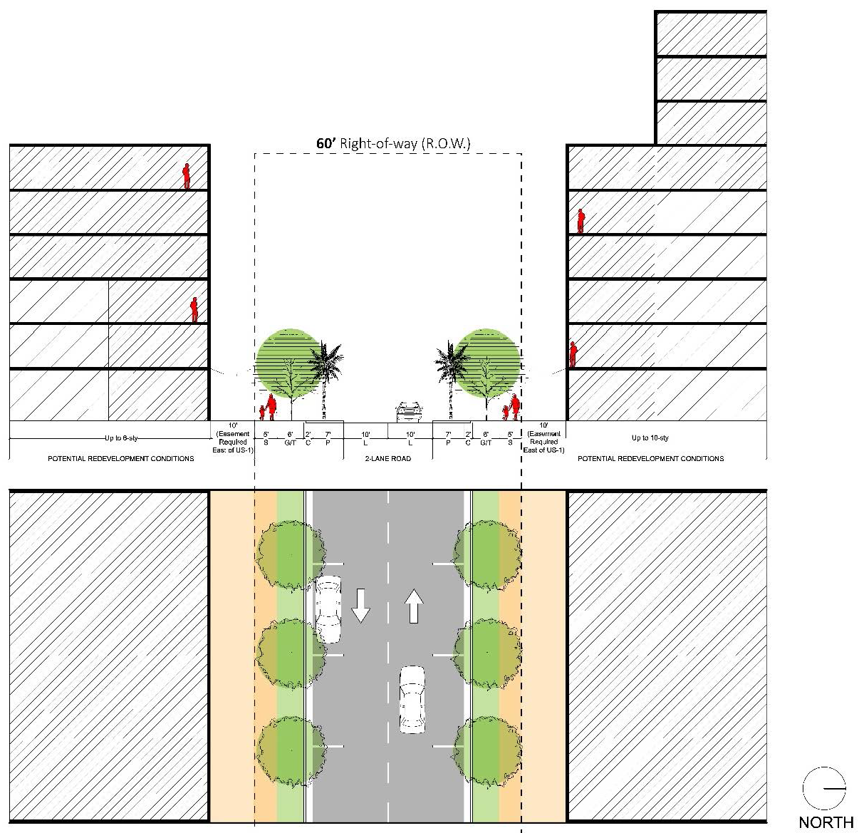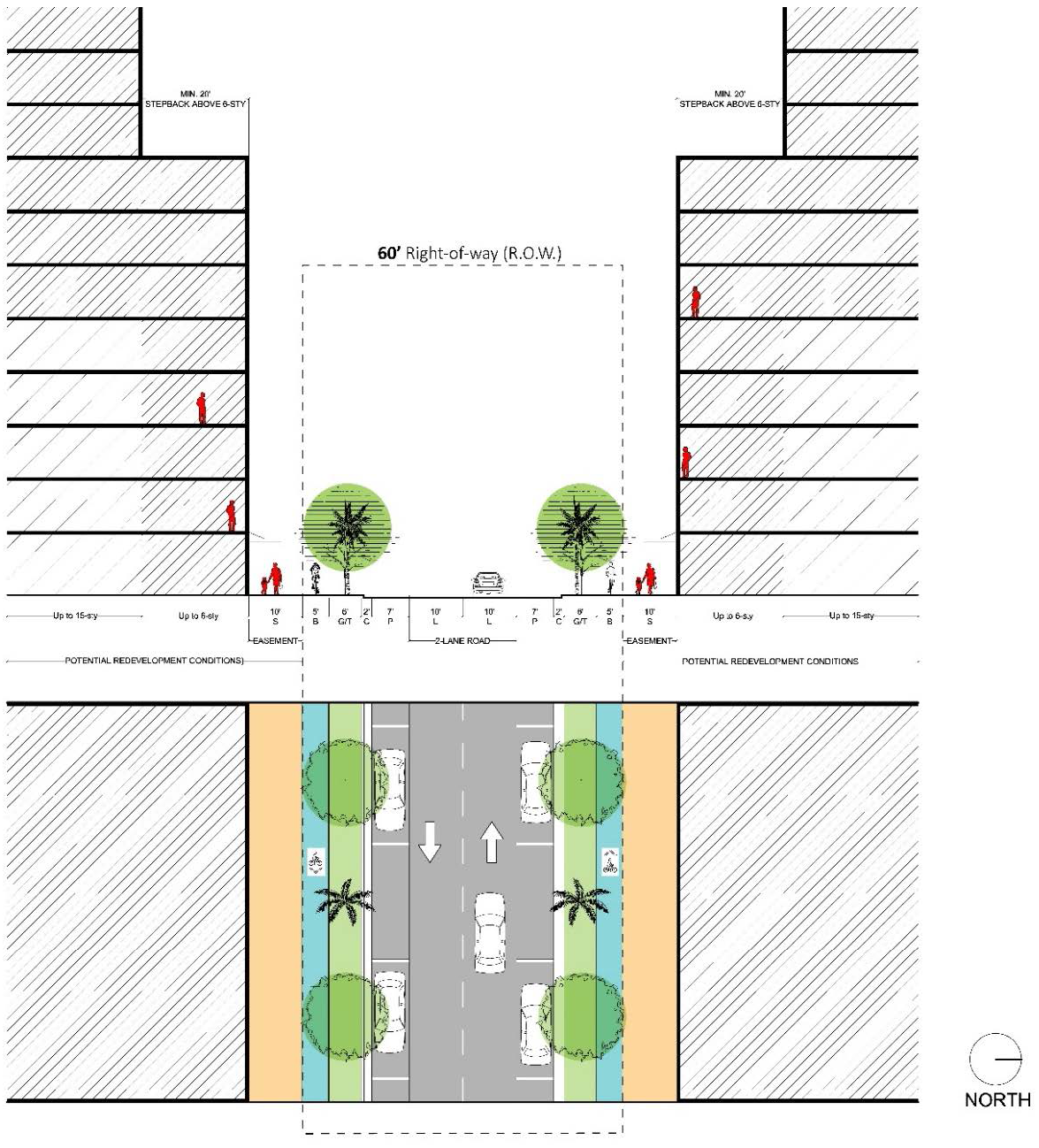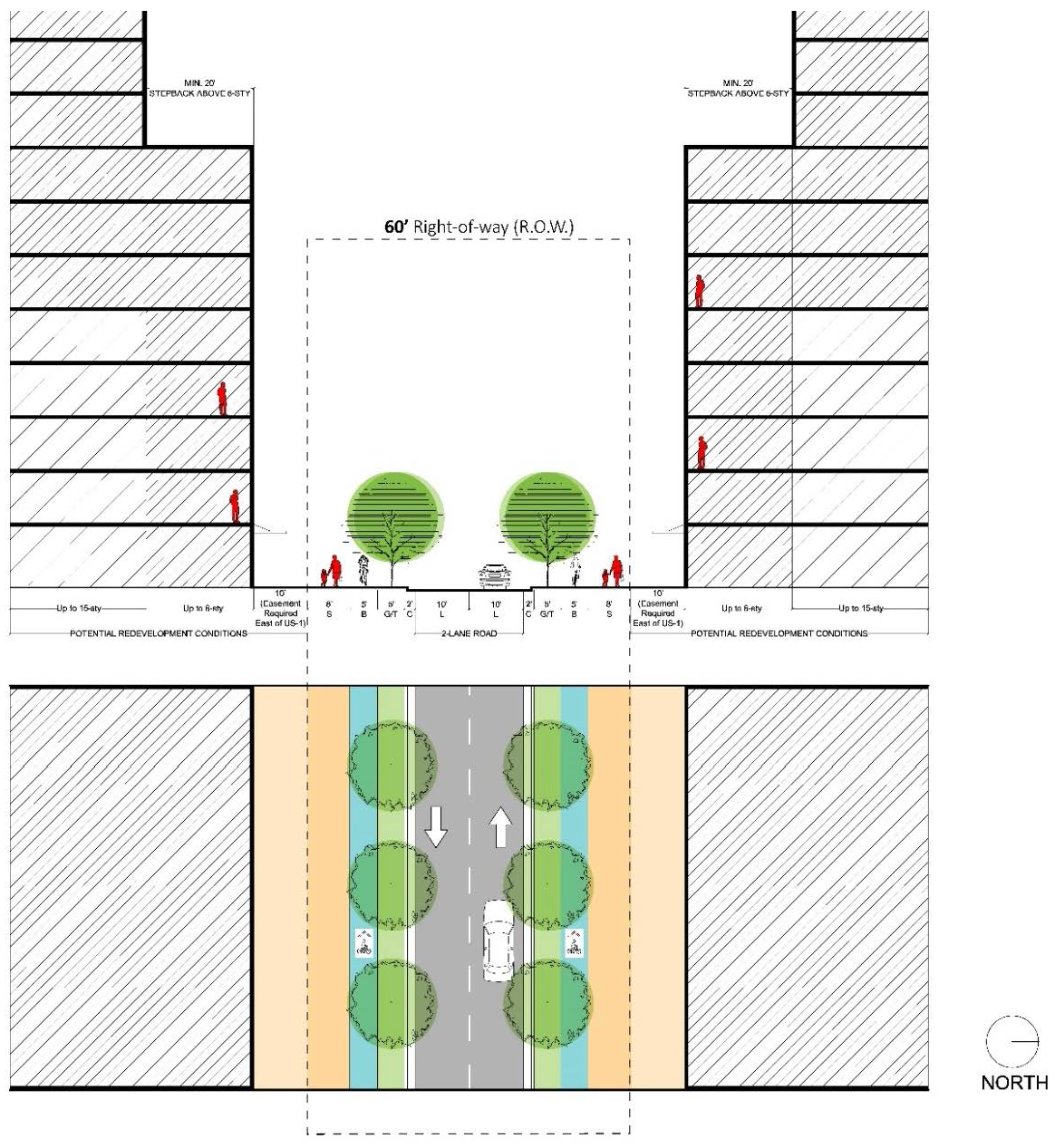 Figure 78-84(f)(6): Secondary/Greenway Streets with No Parking Street Design