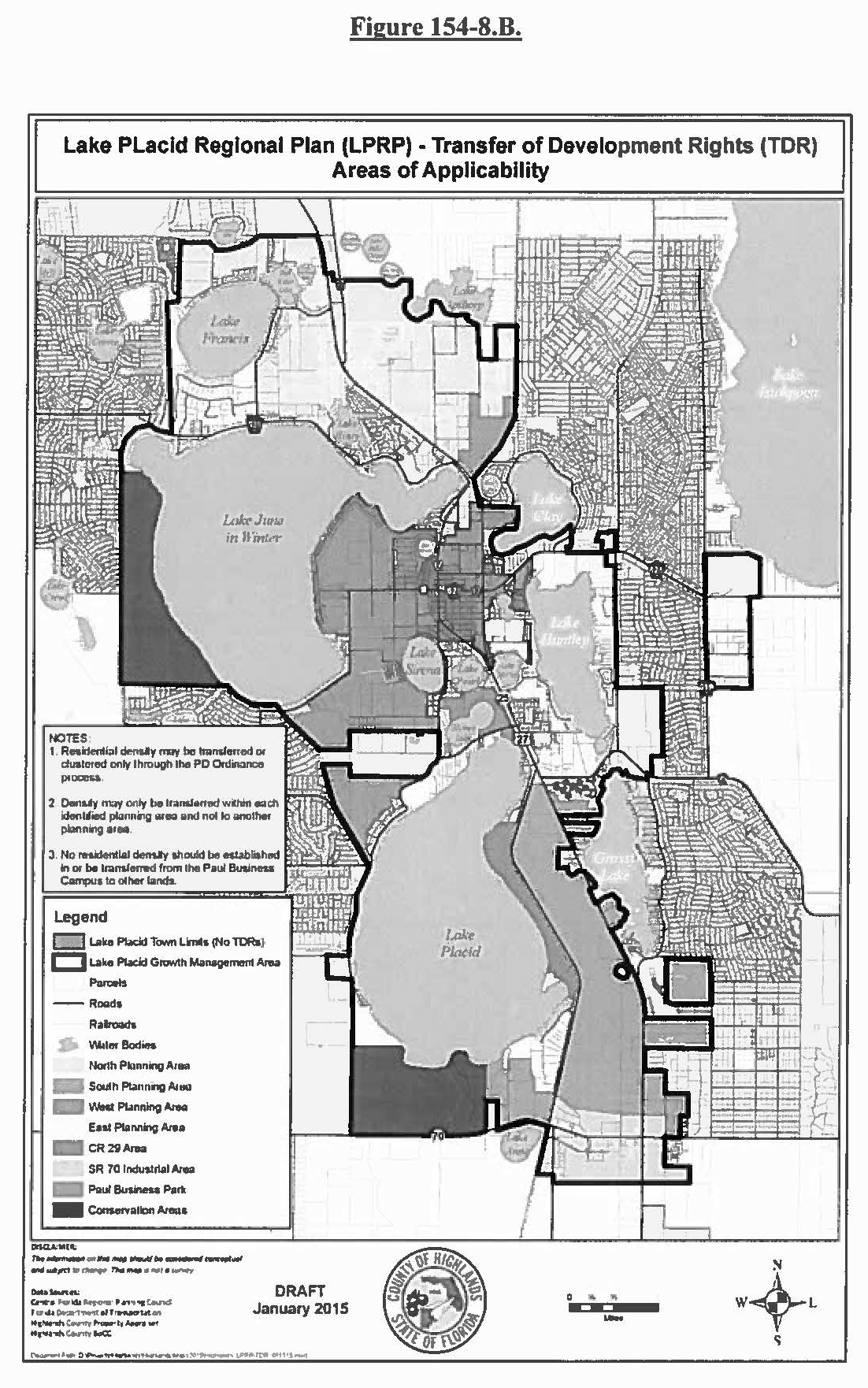 Density transfer. Subject to the provisions of this section, density may be transferred only within an area identified within this Lake Placid Regional Plan Area Plan. For example, density may be transferred within the south area, but not from the south area to any other property or area (i.e. north area). Density may be transferred from the SR 8 Sub-Area to the balance of the south area. Density may not be clustered to or transferred to the SR 8 Sub-Area. The Lake Placid Regional Plan (LPRP) - Transfer of Development Rights (TDR) Areas of Applicability Map identifies the planning areas referenced above.