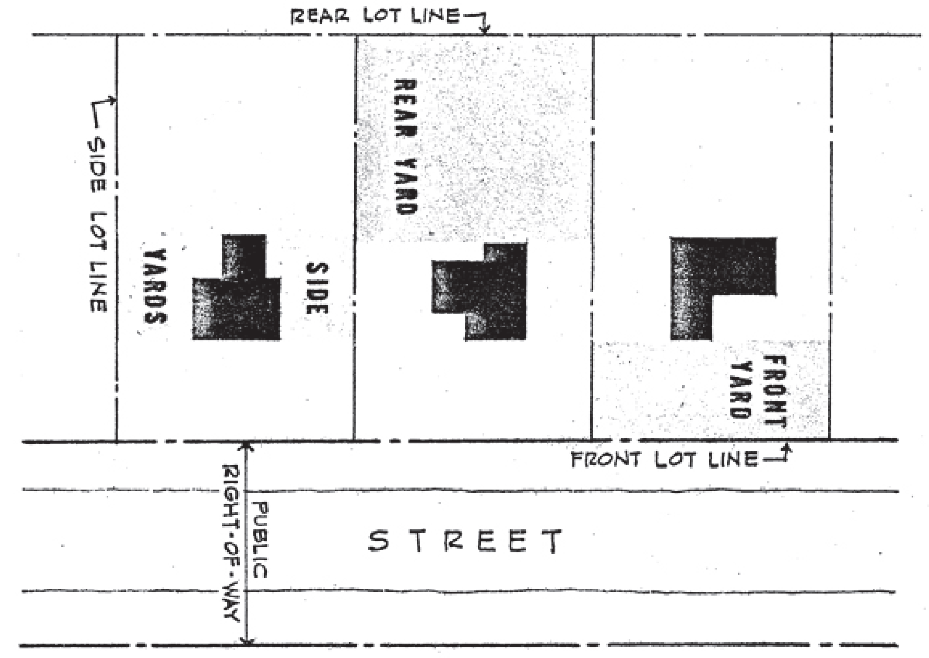 Yard diagram: The diagram below indicates the location of yards on rectangular lots.