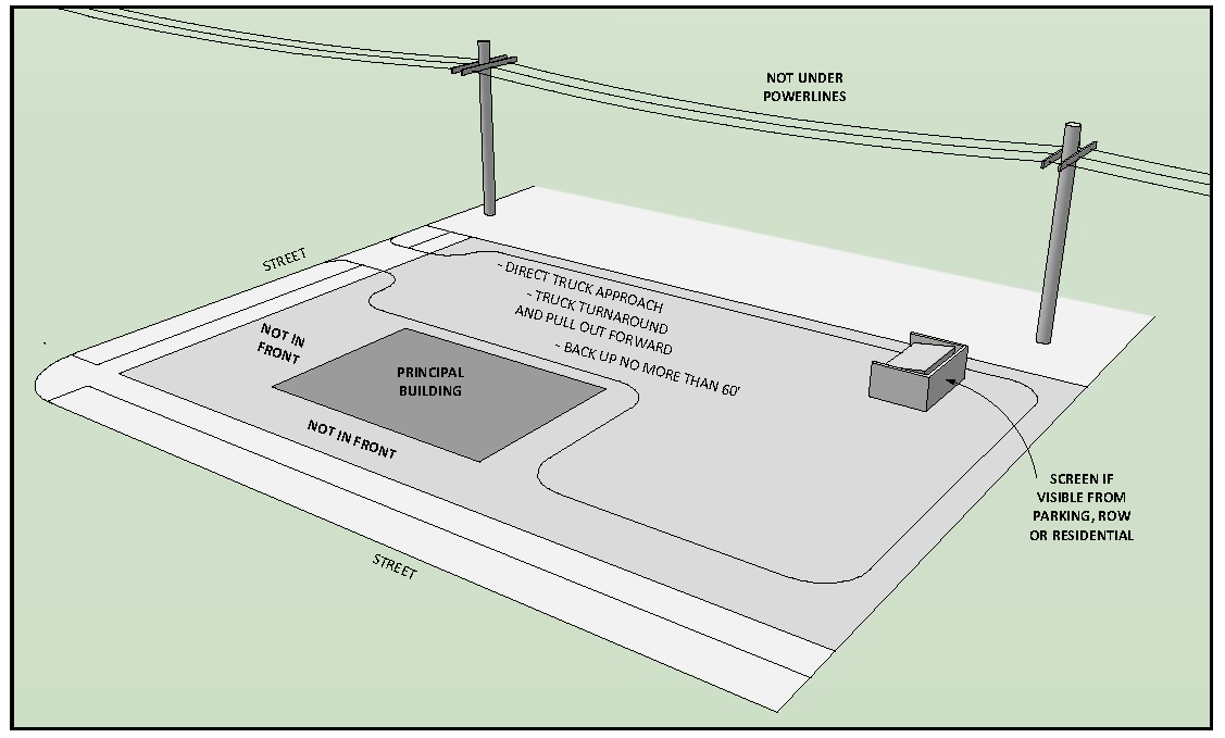 Off-street loading spaces shall be located on the same premises as the use requiring such spaces and shall be accessible to delivery vehicles when all parking spaces are filled. Off-street loading spaces may be open or enclosed.
